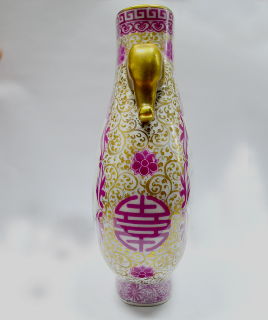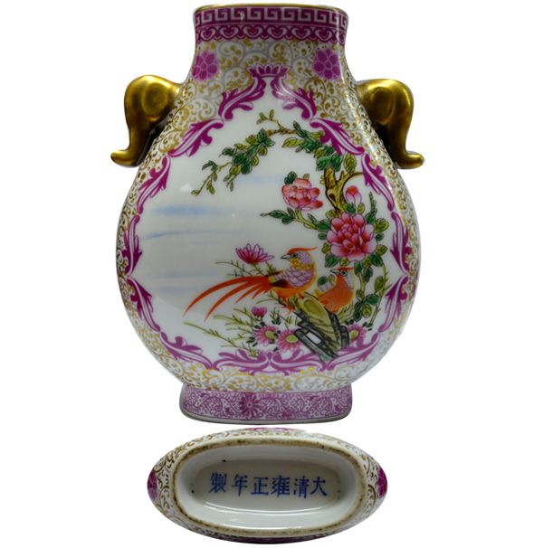 名稱:雙象耳琺瑯彩開光花鳥扁瓶2059