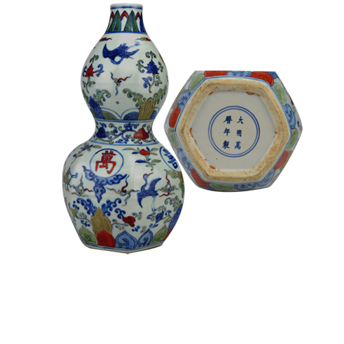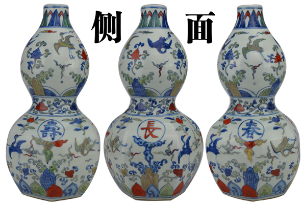 名稱:三彩長春萬壽鶴紋葫蘆瓶(六棱)650-8