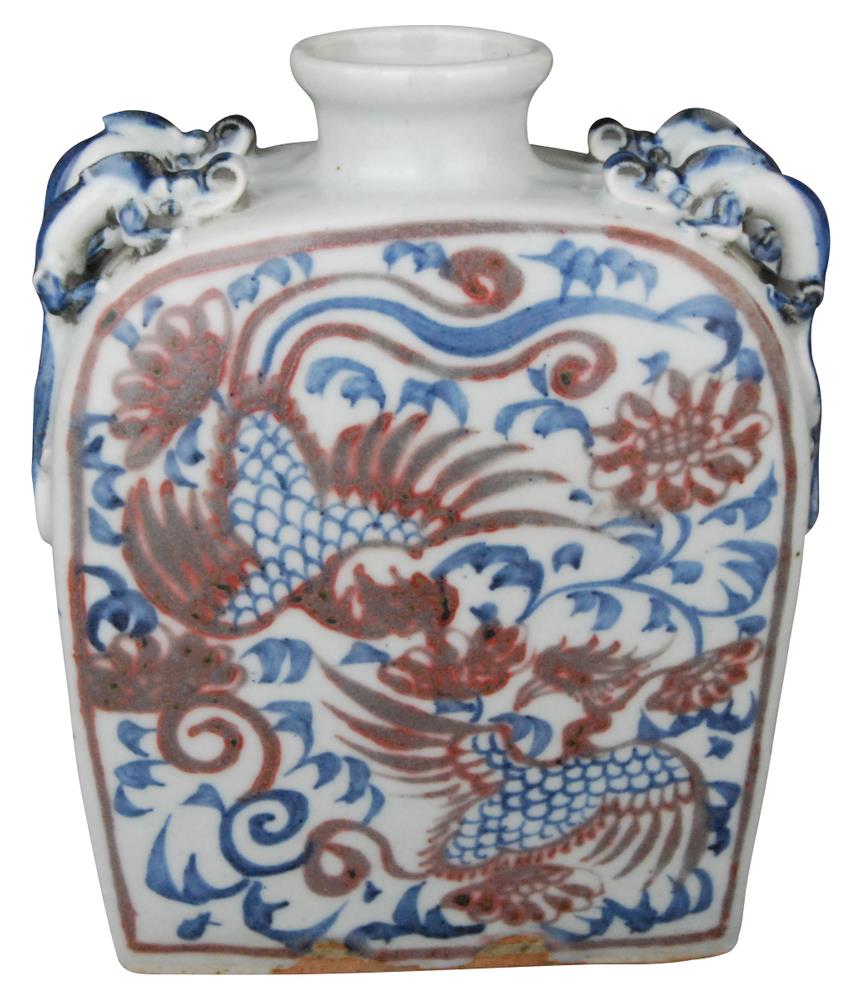 名稱:青花釉里紅鳳紋四系扁壺