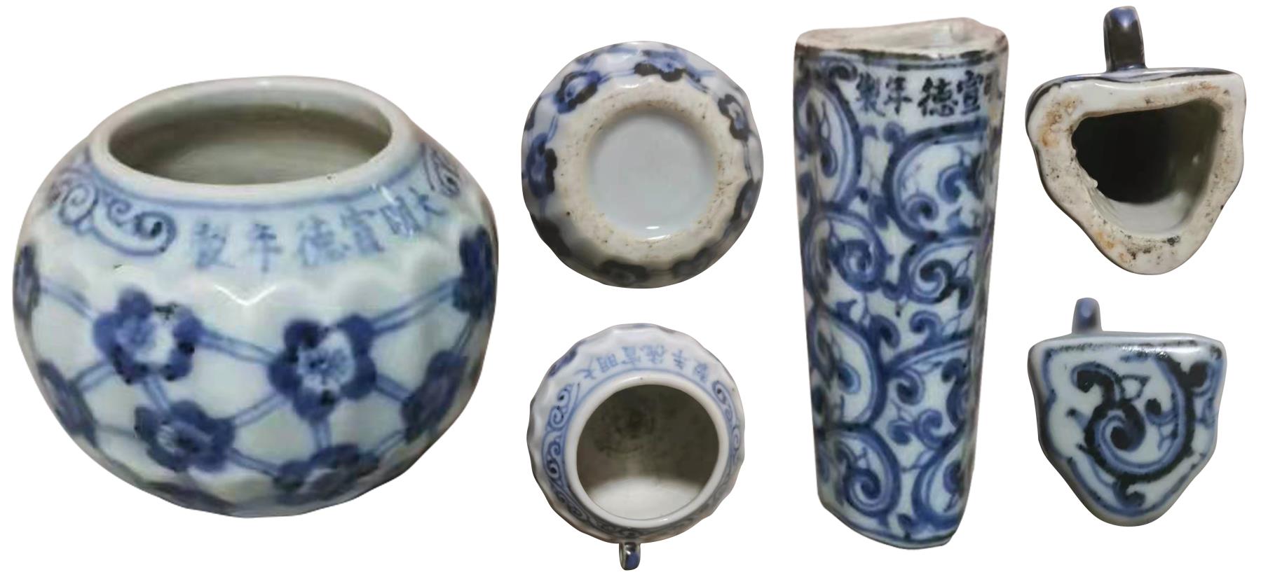 名稱:大明宣德年制款青花鳥食罐一組