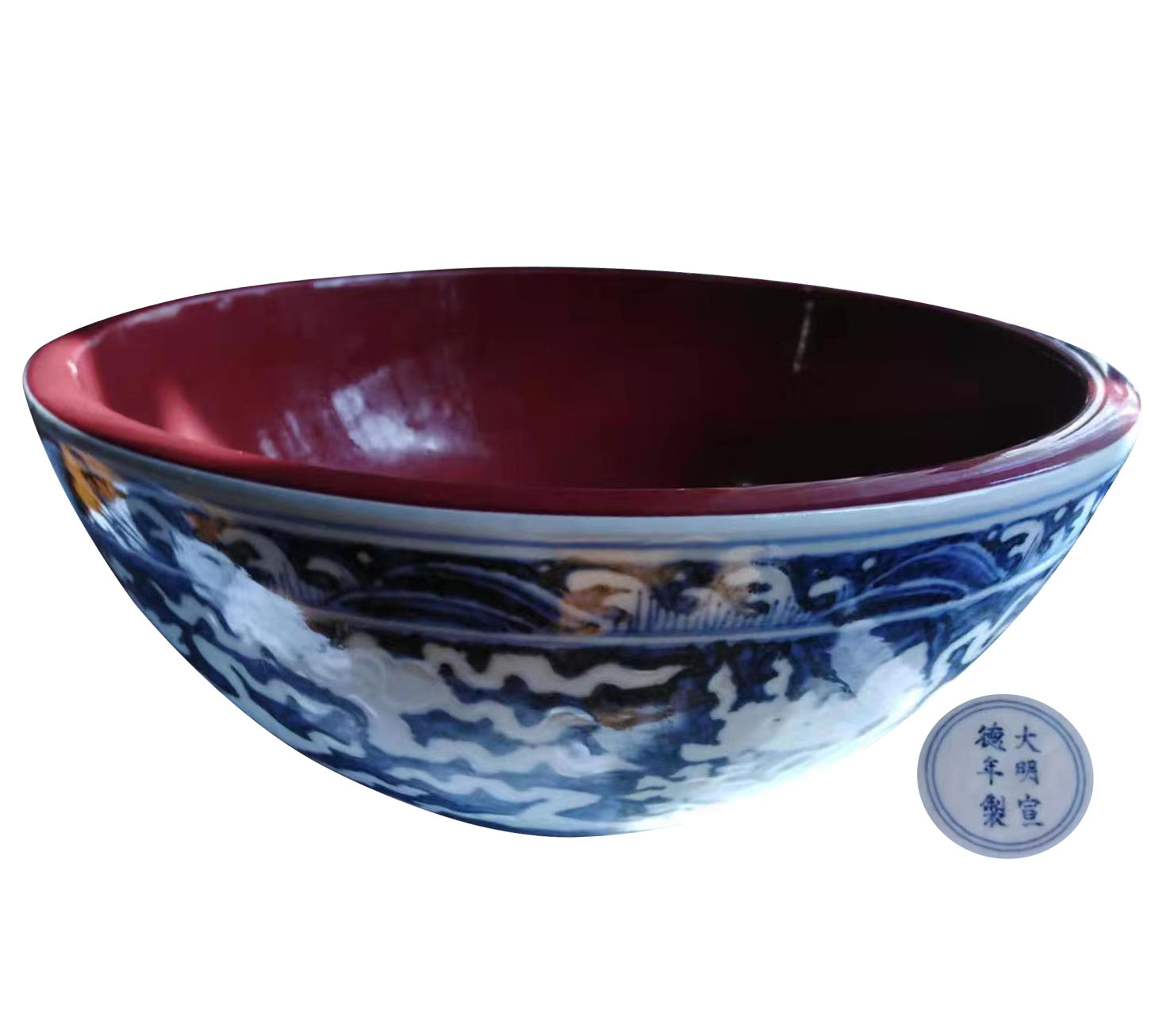 名稱:大明宣德年制青花暗刻龍紋怨