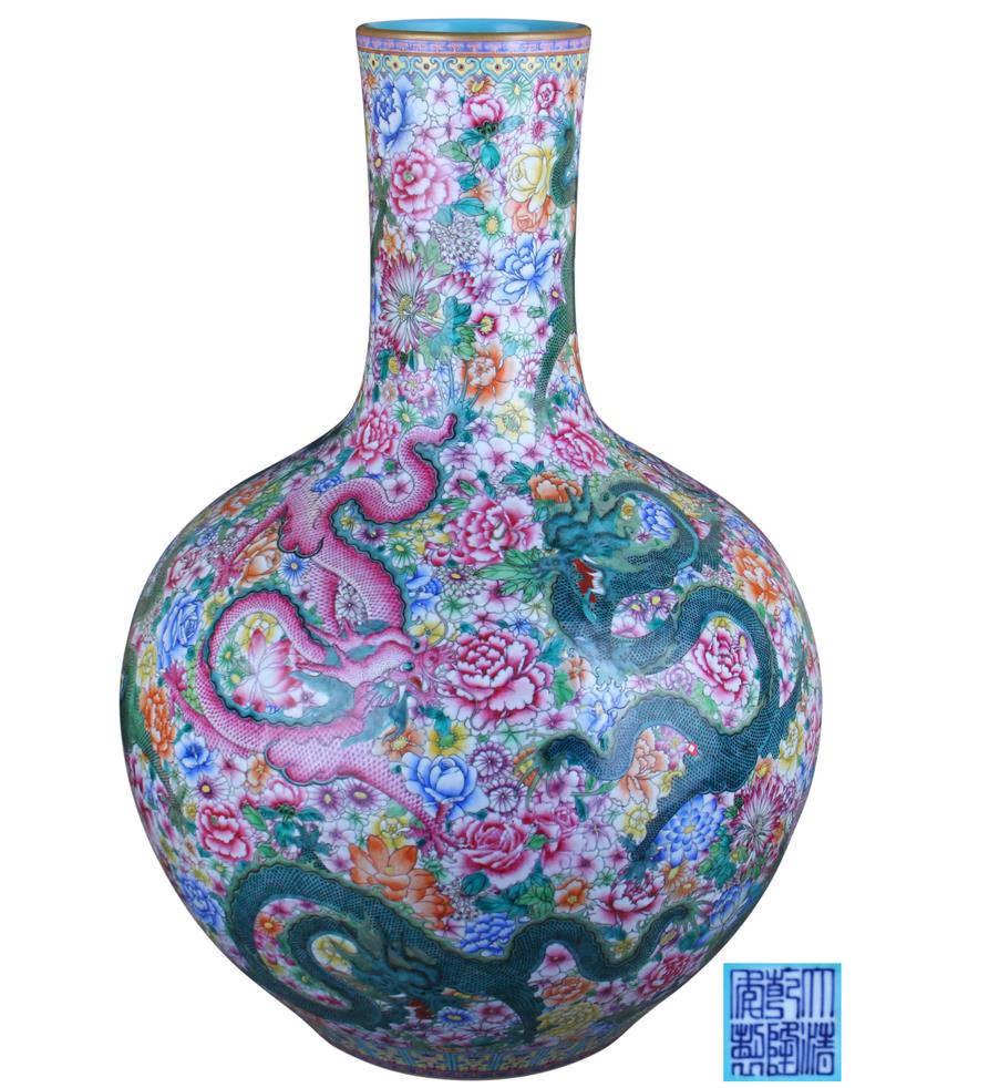 名稱:大清乾隆年制九龍百花不落地天球瓶