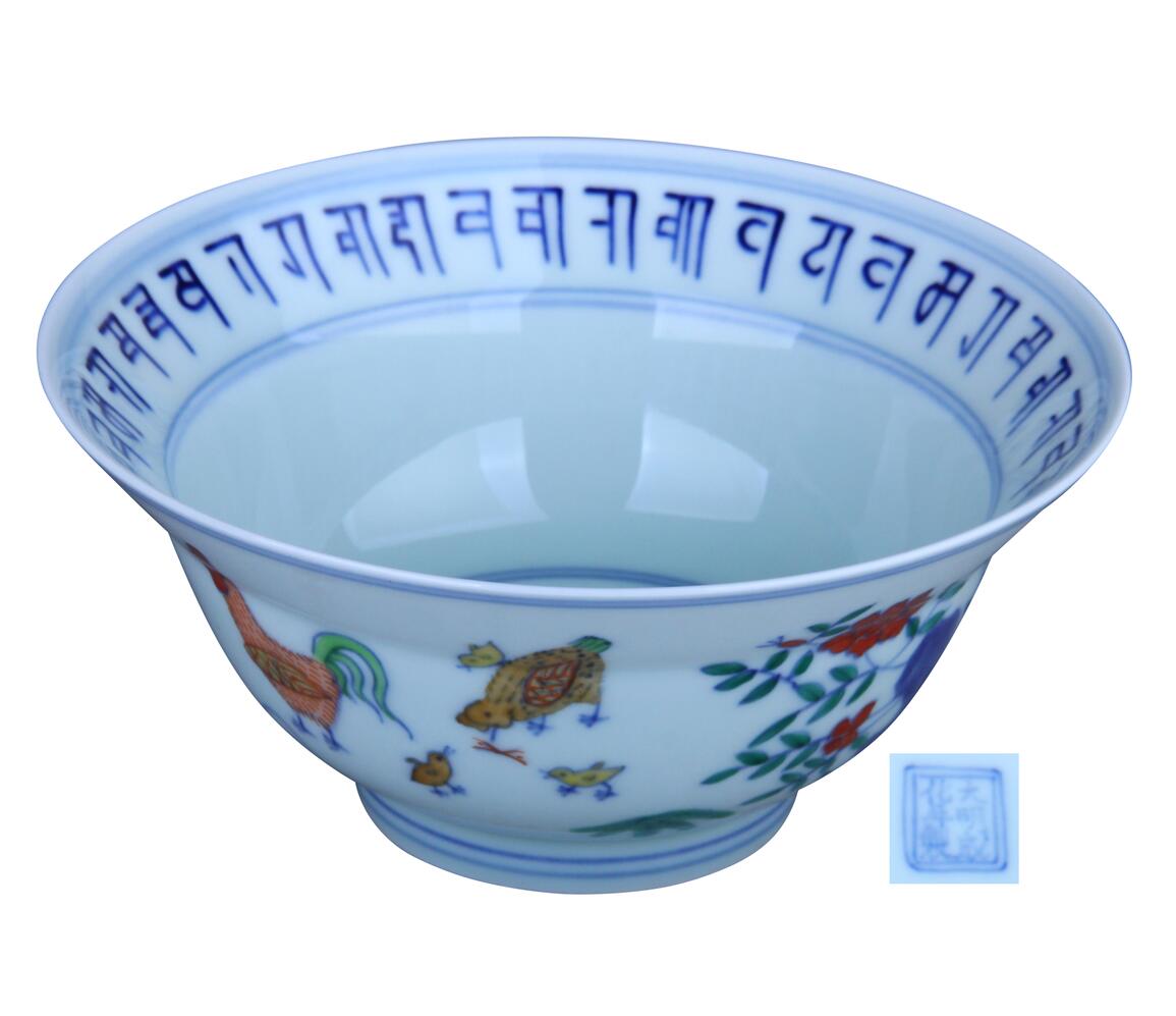 名稱:斗彩雞缸梵紋折沿碗
