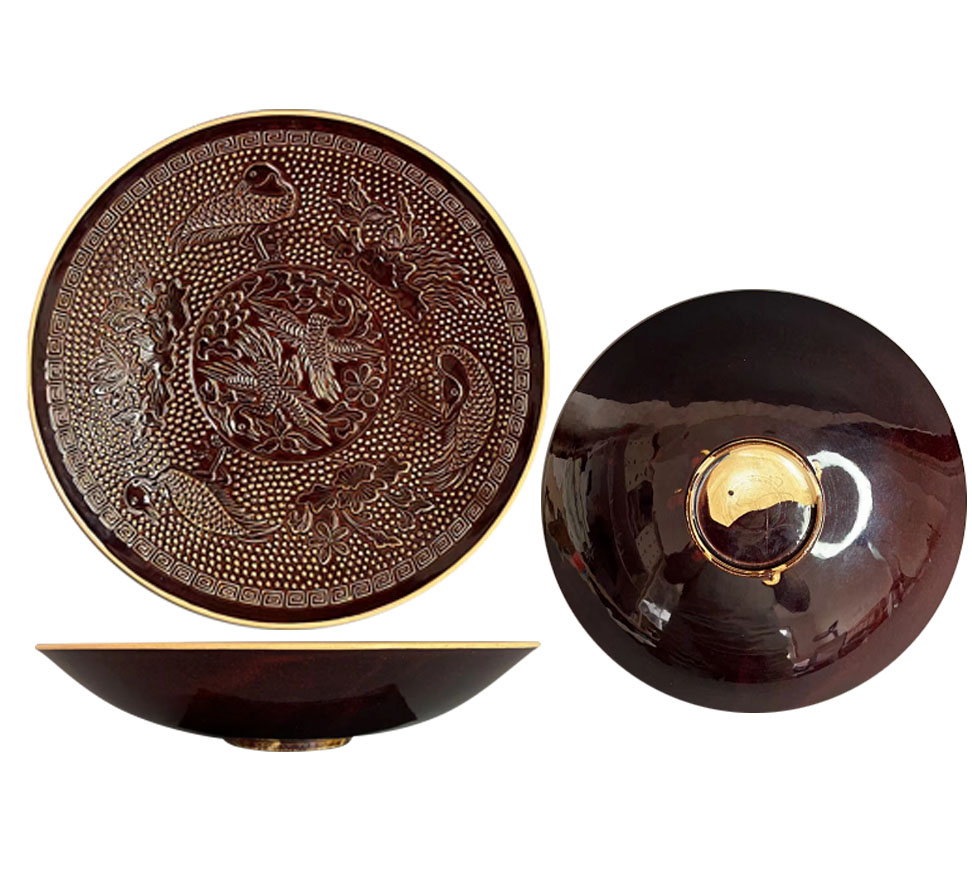 名稱:宋官窯官瓷紫定模印牡丹鳳紋折腰收口大盤(pán)