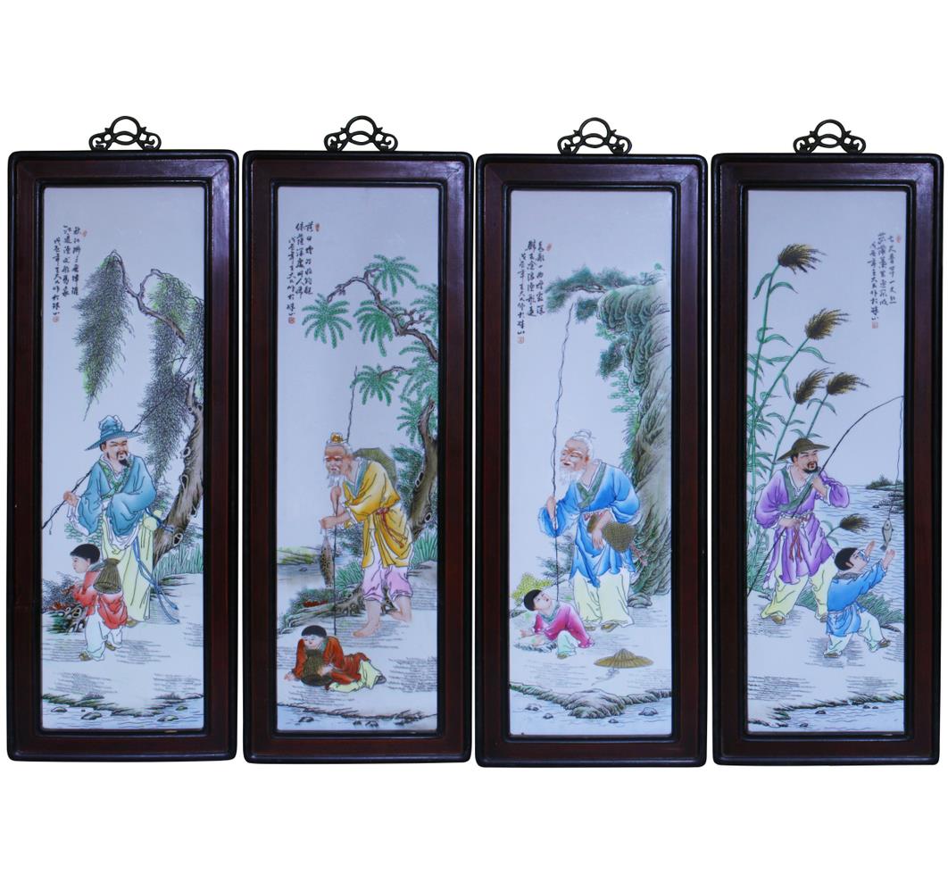 名稱:王大凡款《漁樂圖》四條屏瓷板畫