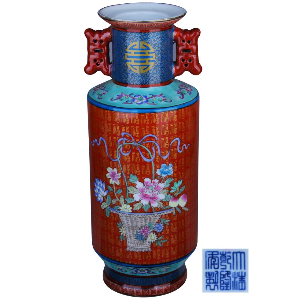 名稱:醬秞金福地粉彩雙耳棒槌瓶