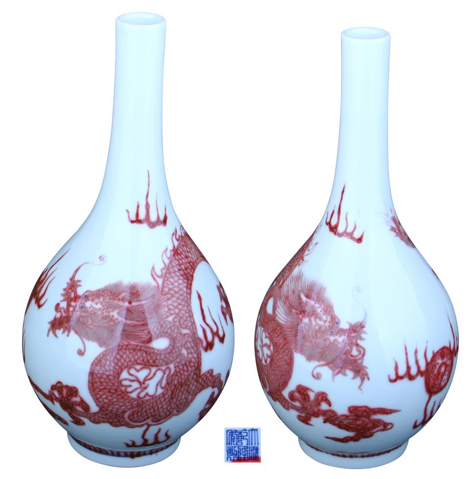 名稱:大清乾隆年制釉里紅長頸瓶 一對