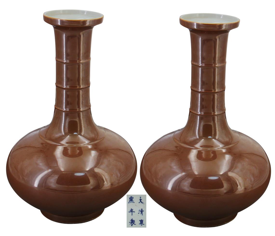 名稱:大清康熙年制茶葉末釉竹節(jié)賞瓶一對