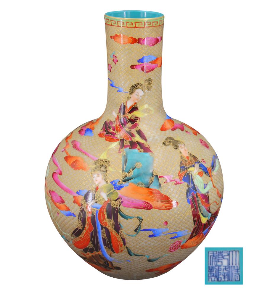 名稱:大清乾隆年制款刻瓷描金天球瓶