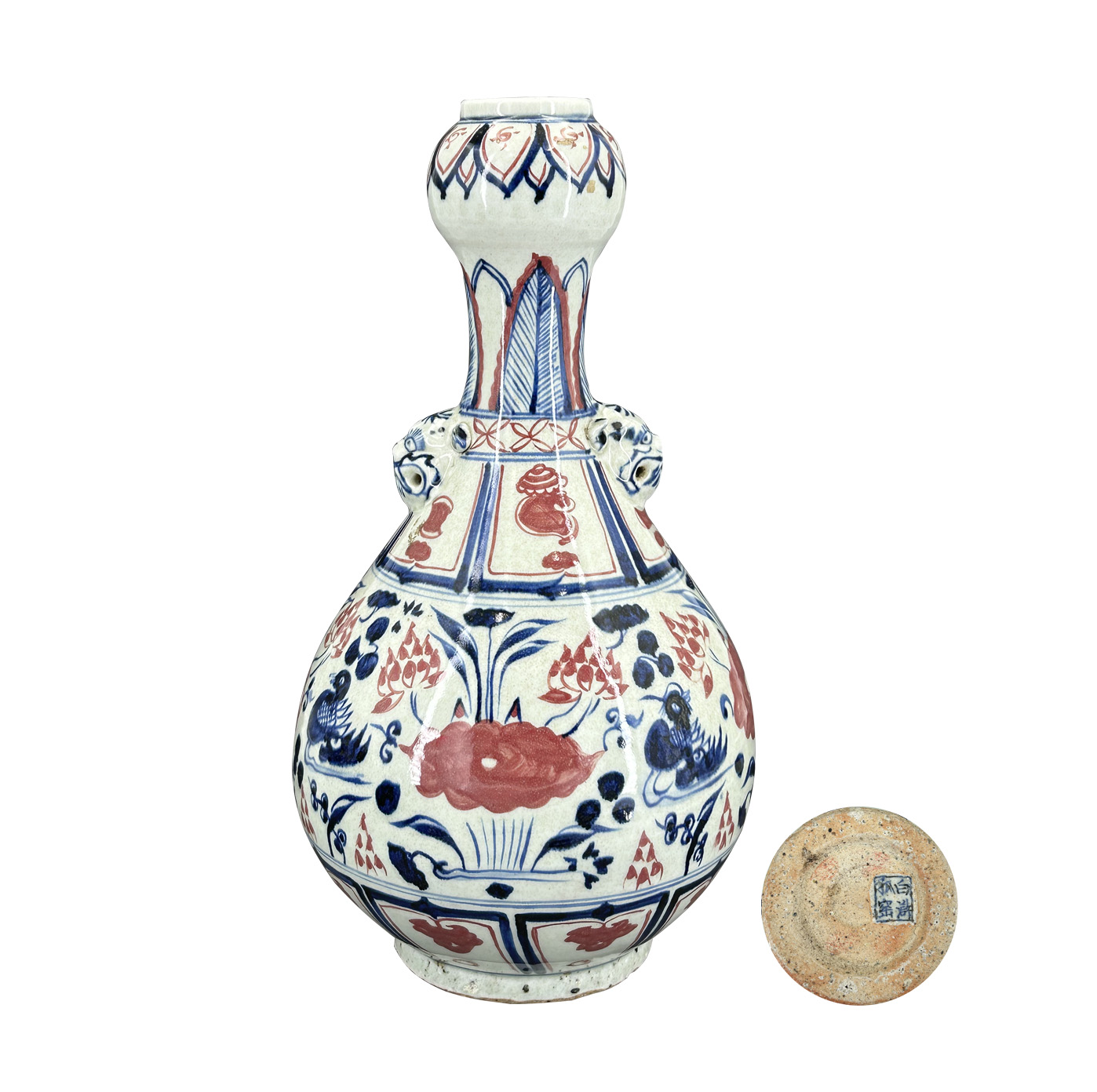 名稱:青花釉里紅鴛鴦一把蓮蒜頭瓶