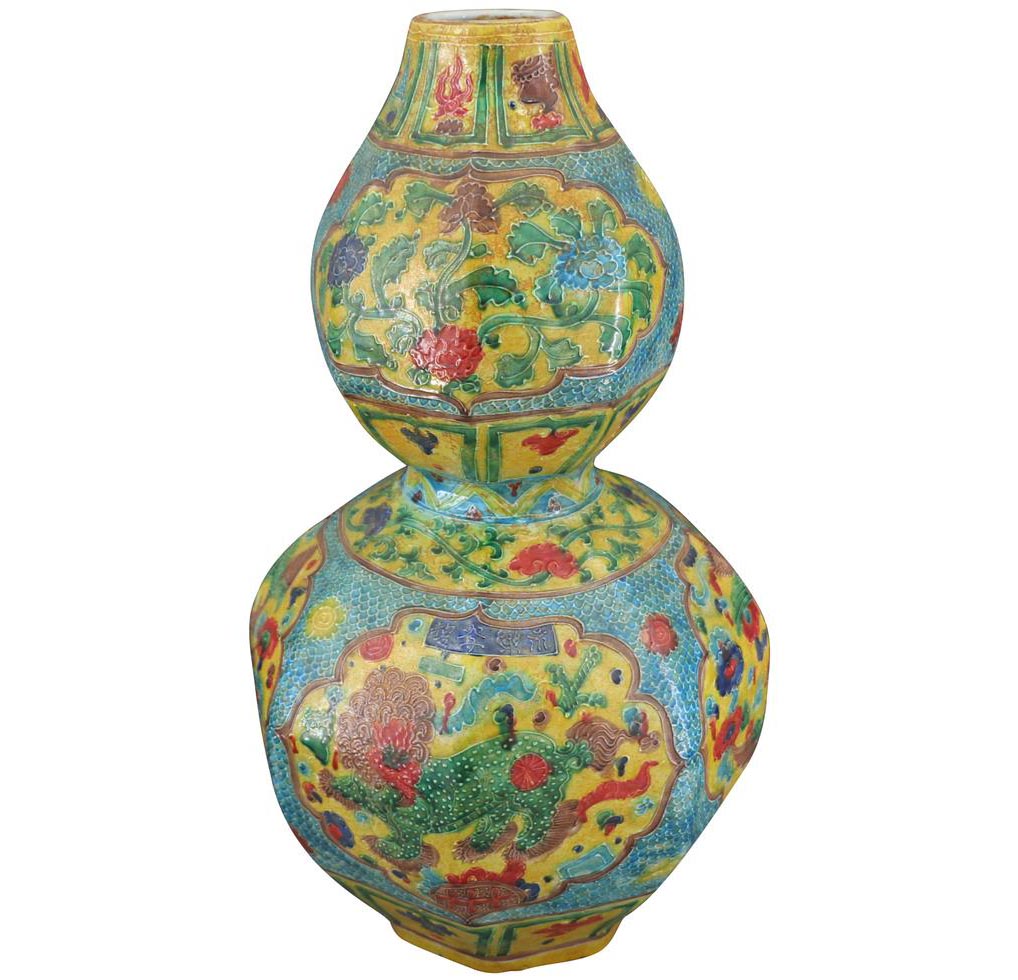 名稱:永樂(lè)年制五彩瑞獸開光八棱葫蘆瓶