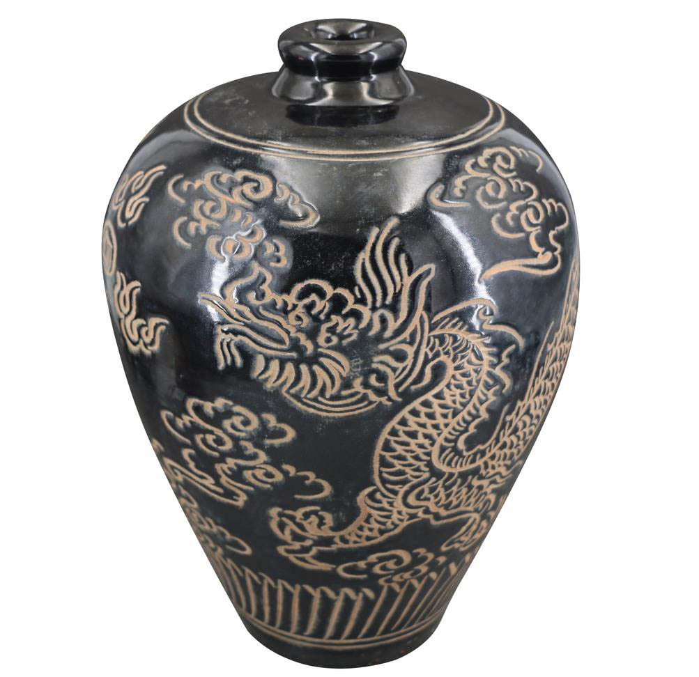 名稱:磁州窯黑地劃花紋梅瓶