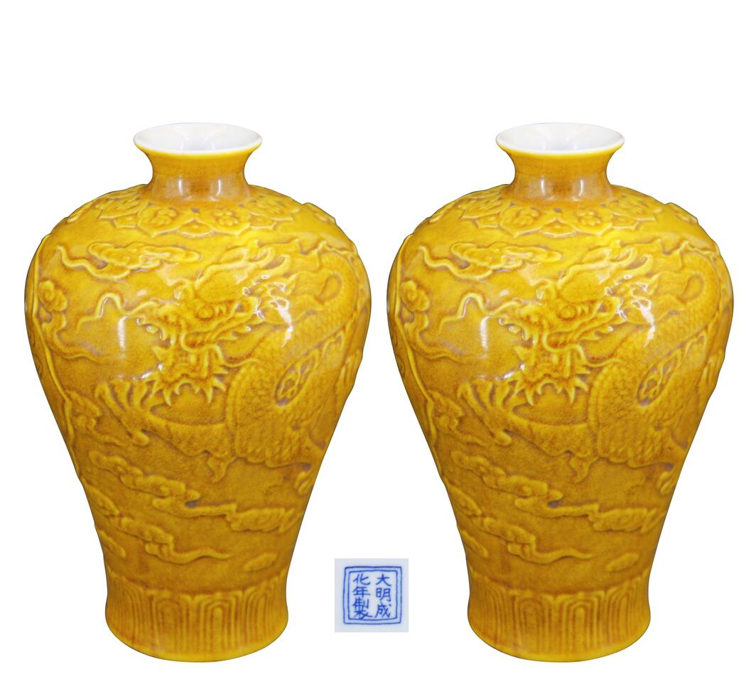 名稱:大明成化年制款黃釉龍紋梅瓶(一對(duì))
