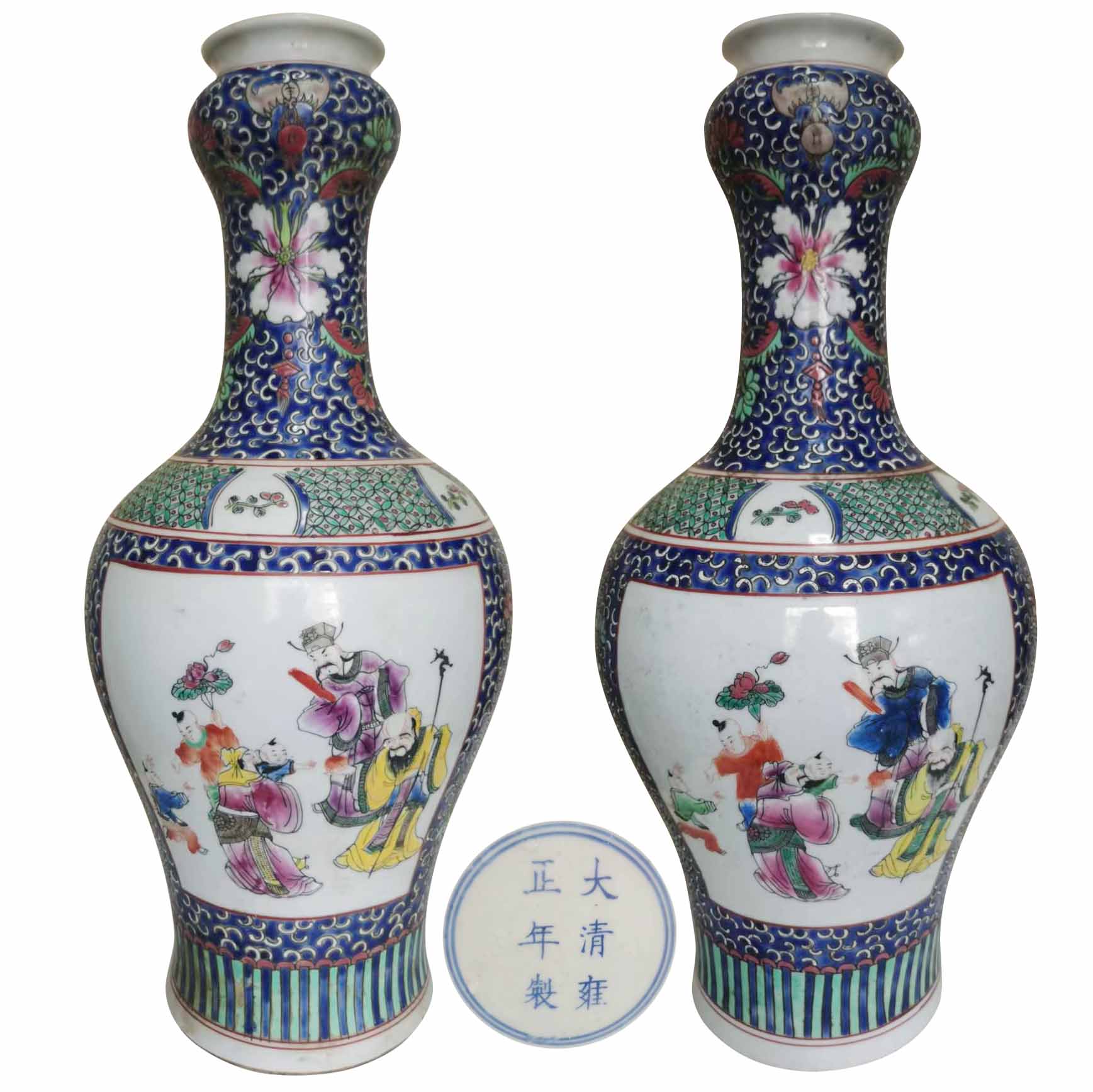 名稱:大清雍正年制粉彩開(kāi)光蒜頭瓶一對(duì)