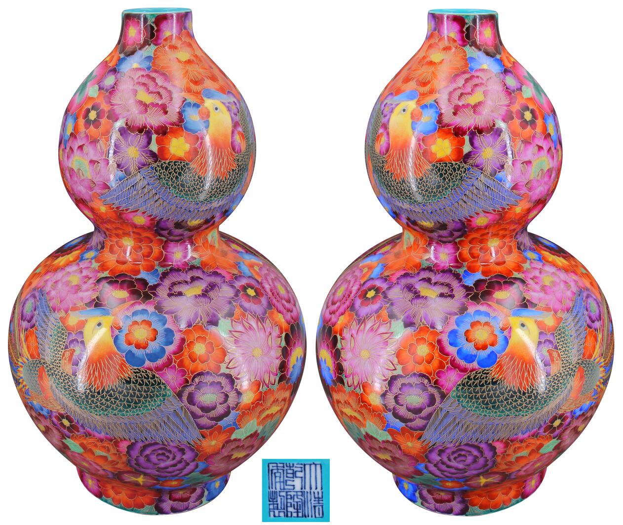 名稱:大清乾隆年制款百花不落地描金鳳紋葫蘆瓶