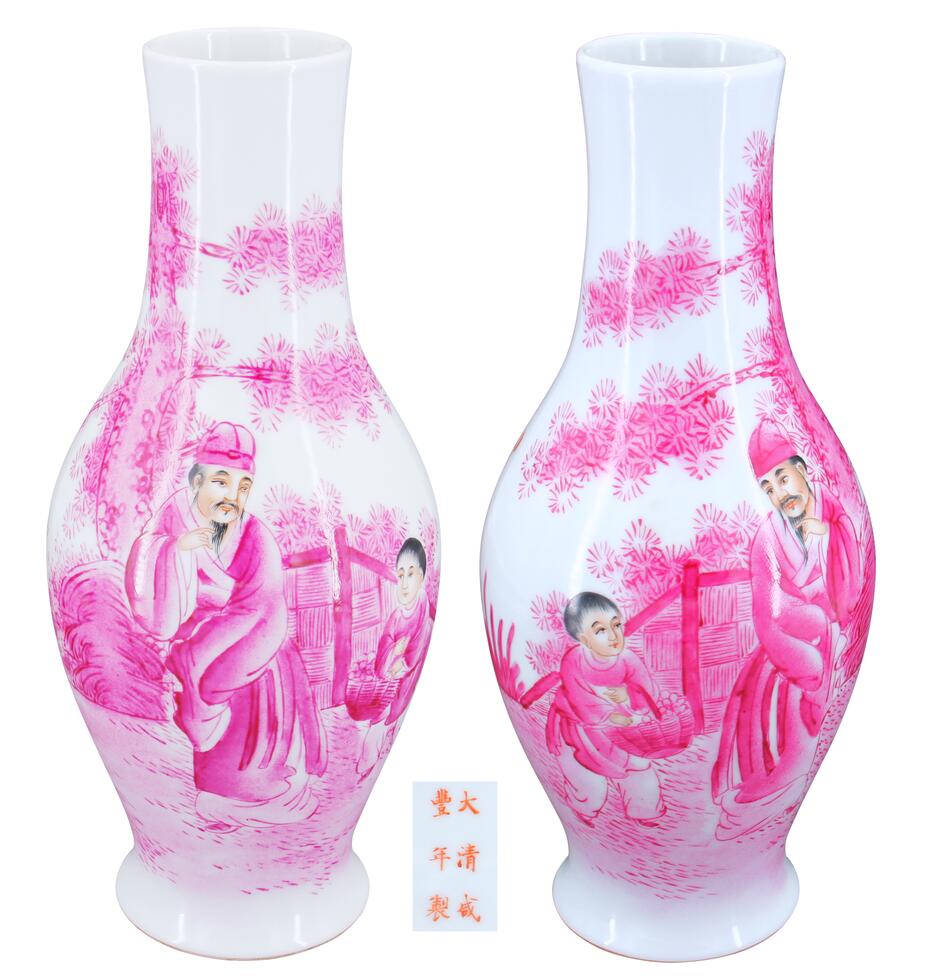 名稱:大清咸豐年制款胭脂地人物故事橄欖瓶一對(duì)