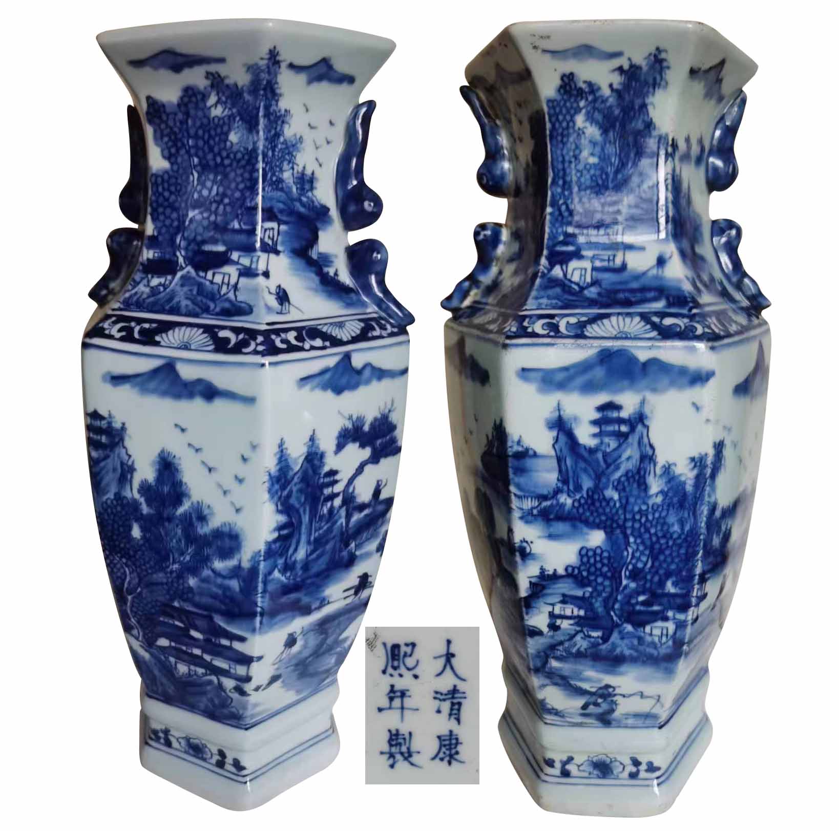名稱:大清康熙年制青花六棱賞瓶一對(duì)