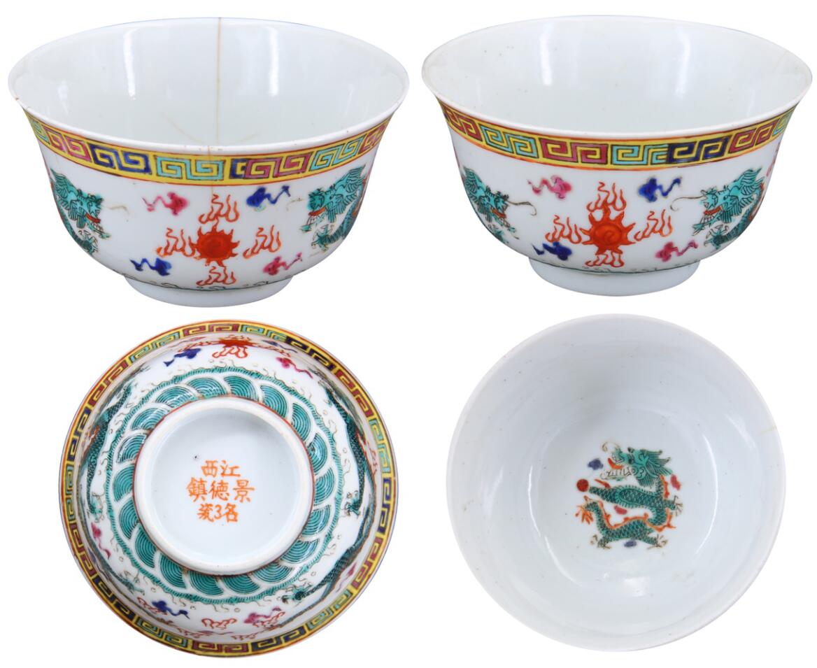 名稱:景德鎮(zhèn)五彩龍紋馬蹄杯一對