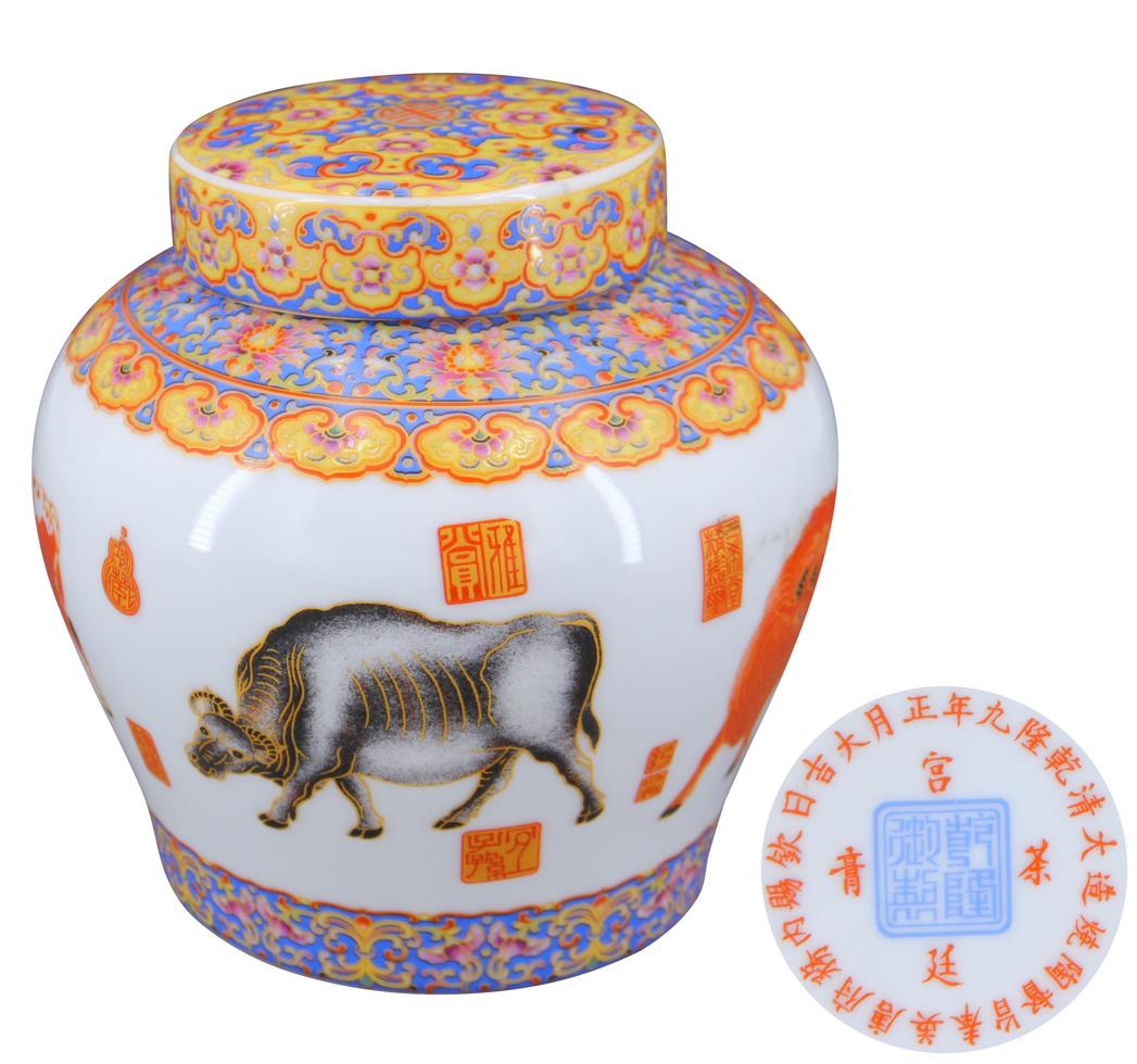名稱:乾隆御制款 五牛圖蓋罐