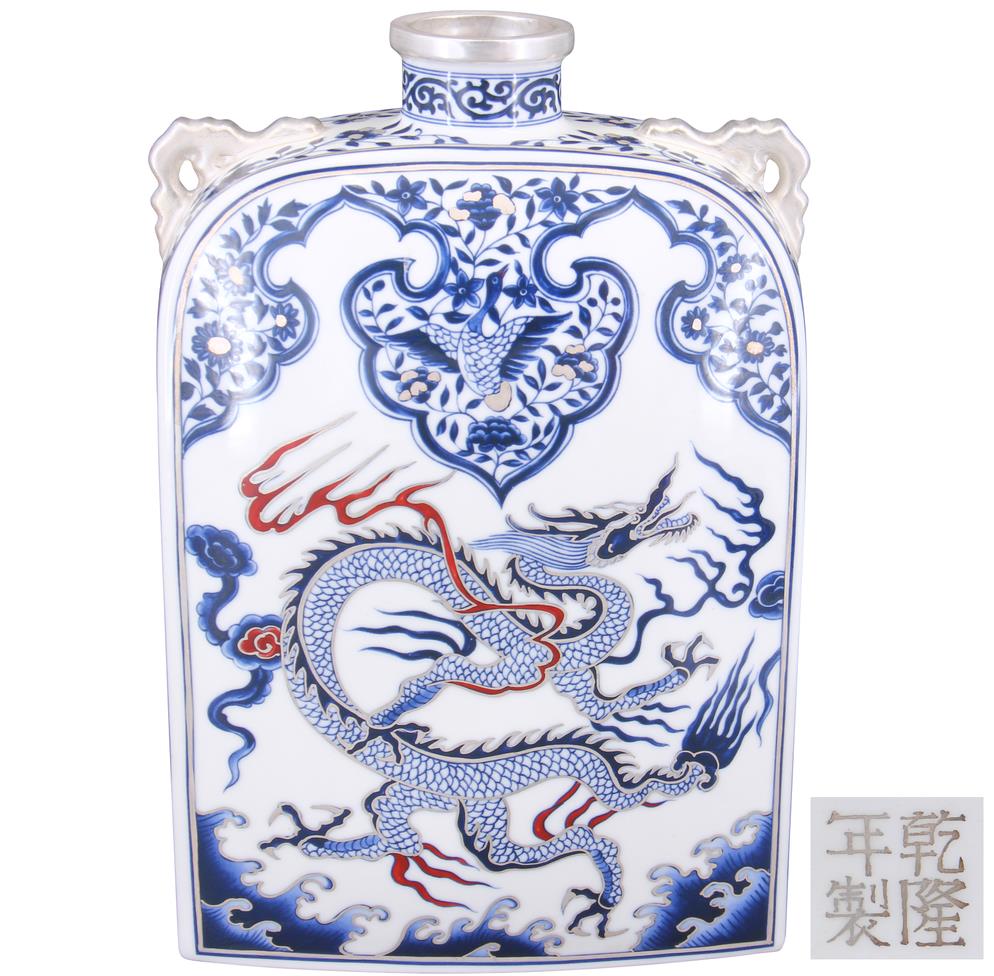 名稱:乾隆年制款青花釉里紅描銀龍紋雙耳扁壺