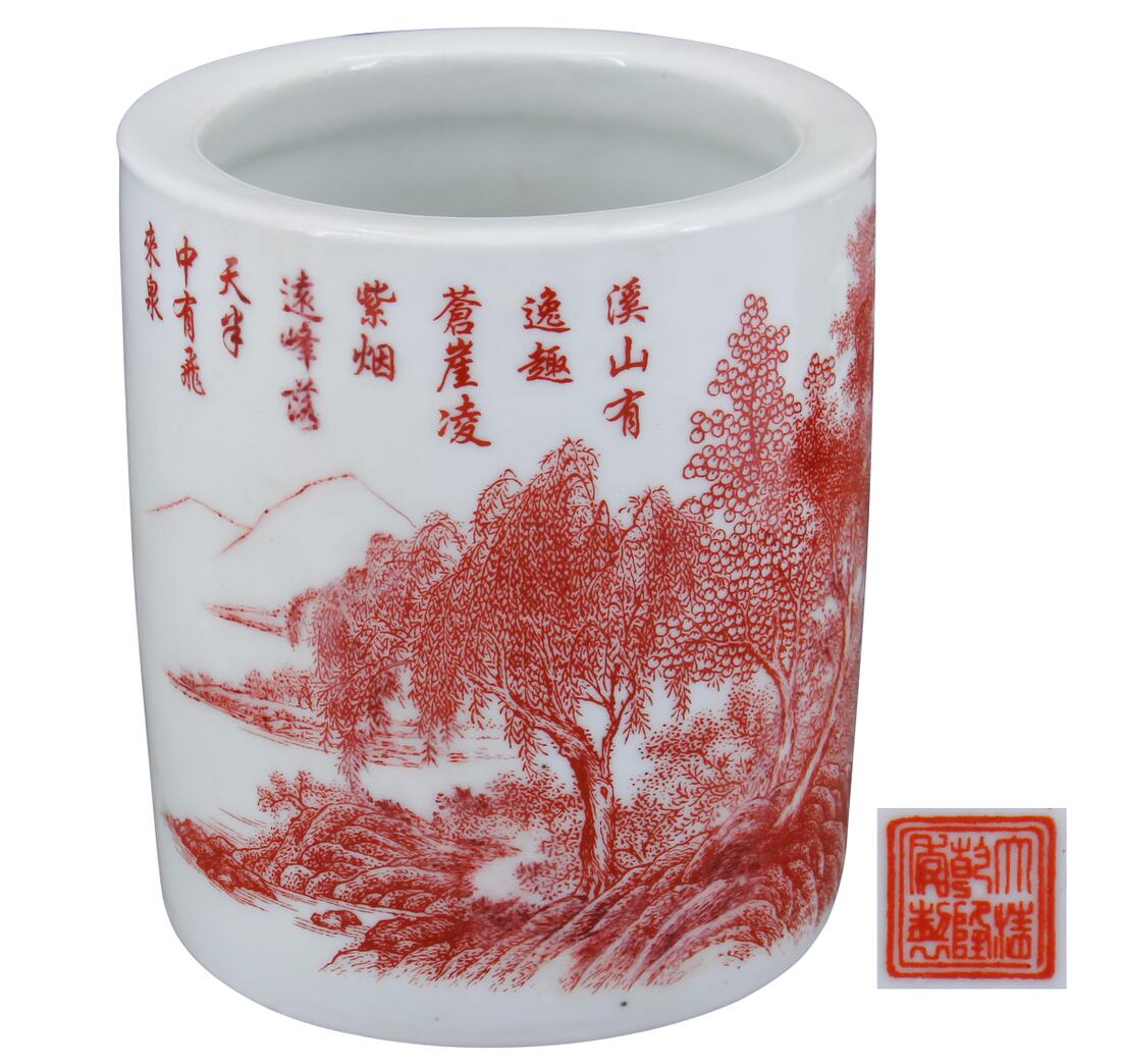 名稱:大清乾隆年制款釉里紅詩文筆筒