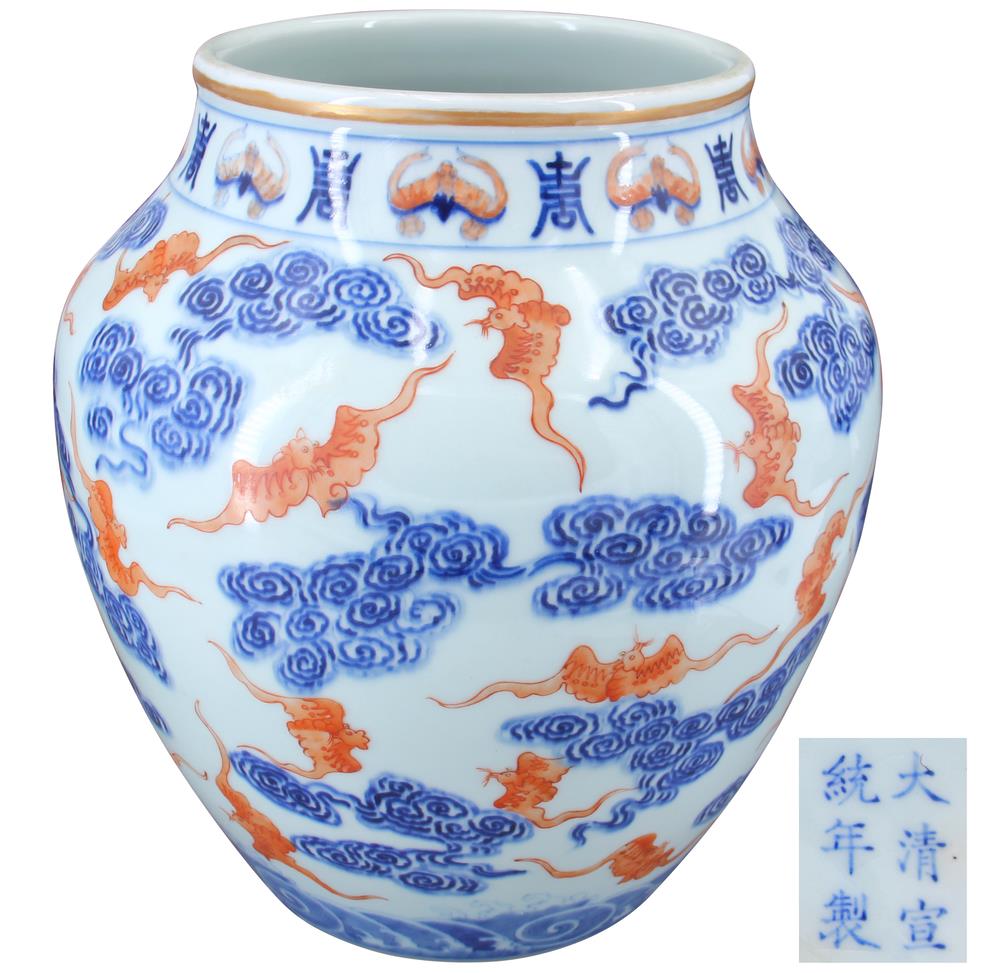 名稱:大清宣統(tǒng)年制款青花祥云礬紅福壽尊