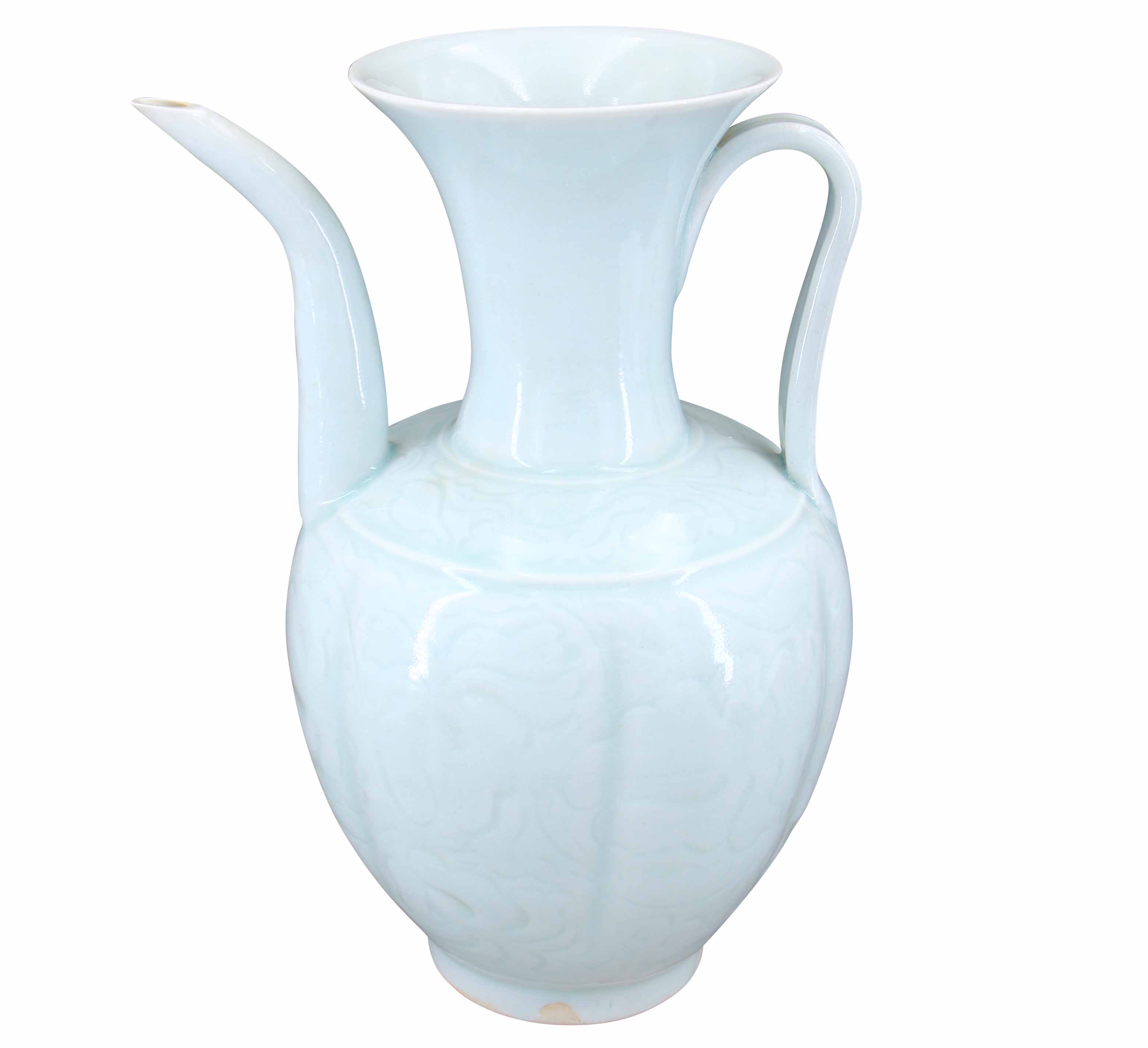定窯劃花六棱花卉執(zhí)壺,定窯白瓷為五大名窯之一,胎質(zhì)細(xì)膩、色而滋潤(rùn),素來享譽(yù)盛名,定窯器以碗或盤最為常見,執(zhí)壺相對(duì)少見,壺嘴隨性彎曲,壺把呈扁狀連接于壺腹部與頸部,立體感十足,腹部輪廓分明,工藝嫻熟精湛,風(fēng)格犀利灑脫,通體飾白釉,足部露胎、局部有流釉現(xiàn)象,風(fēng)格別具、素雅潔凈,彰顯定窯白瓷特征,堪稱定窯執(zhí)壺之精品,令人贊嘆!