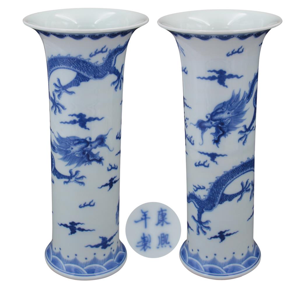 名稱:康熙年制款青花龍紋花觚一對(duì)