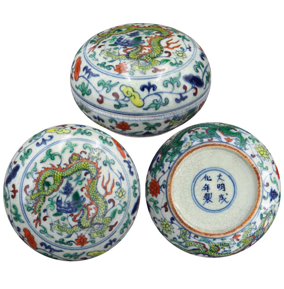 名稱:大明成化年制款斗彩龍紋蓋盒
