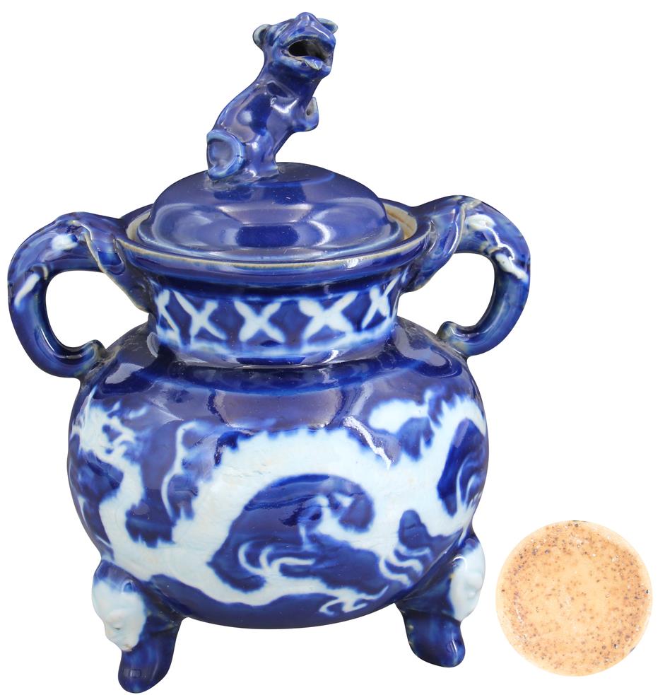 〈霽藍(lán)釉留白龍紋三足鼎〉---通體施祭藍(lán)釉,留白部分刻畫精美龍紋圖案,色澤深邃而亮麗,給人寧靜而高貴的感覺,留白部分通過巧妙的構(gòu)思和精湛的技藝,加上細(xì)致的紋路與藍(lán)釉形成了強(qiáng)烈的對比顯得穩(wěn)重大方,雙耳則增添了美觀和實(shí)用性,整體線條流暢自然無論腹部還是足底,都展現(xiàn)出高端的工藝水平,作為中國古代瓷器中的瑰寶,由于其珍稀性和歷史價值,這類瓷器在市場上備受追捧,價格不斷攀升,對著收藏投資者是一個非常不錯的選擇,不可多得的珍品!