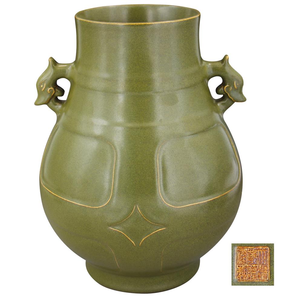 名稱:大清乾隆年制·茶葉末饕餮紋雙螭耳尊
