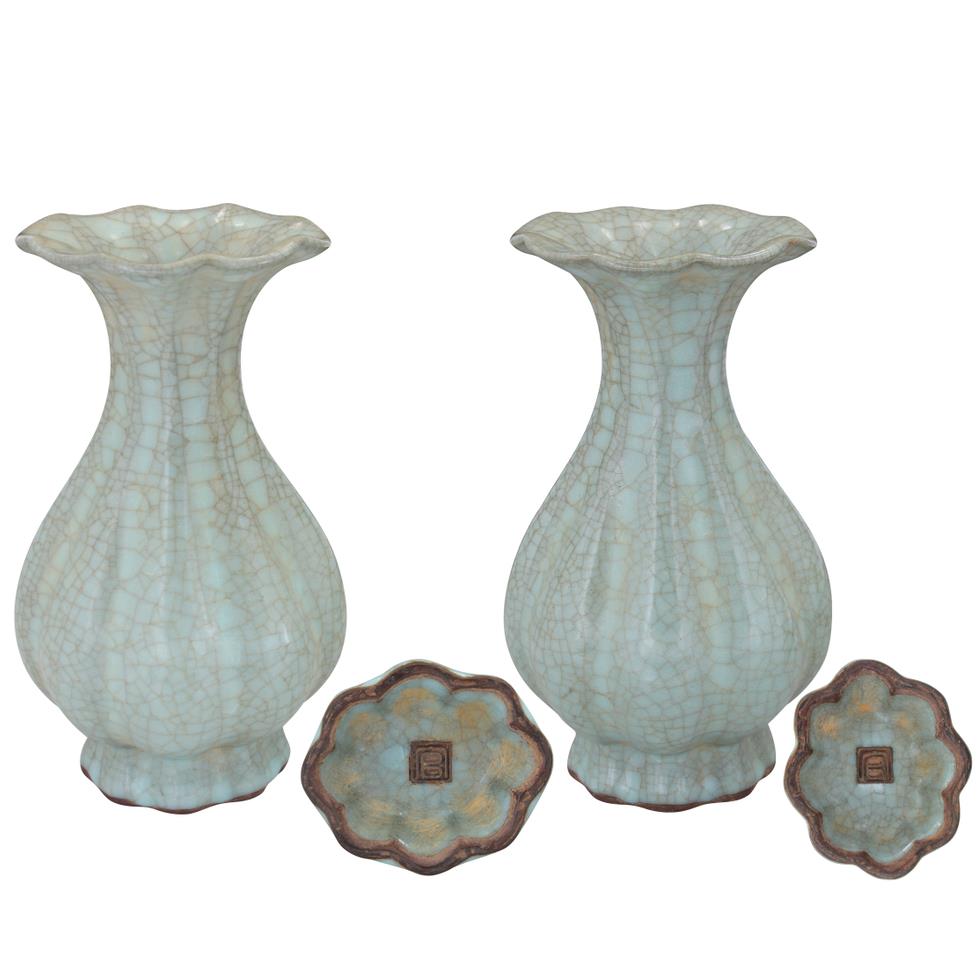 名稱:官字款·瓜棱花觚一對