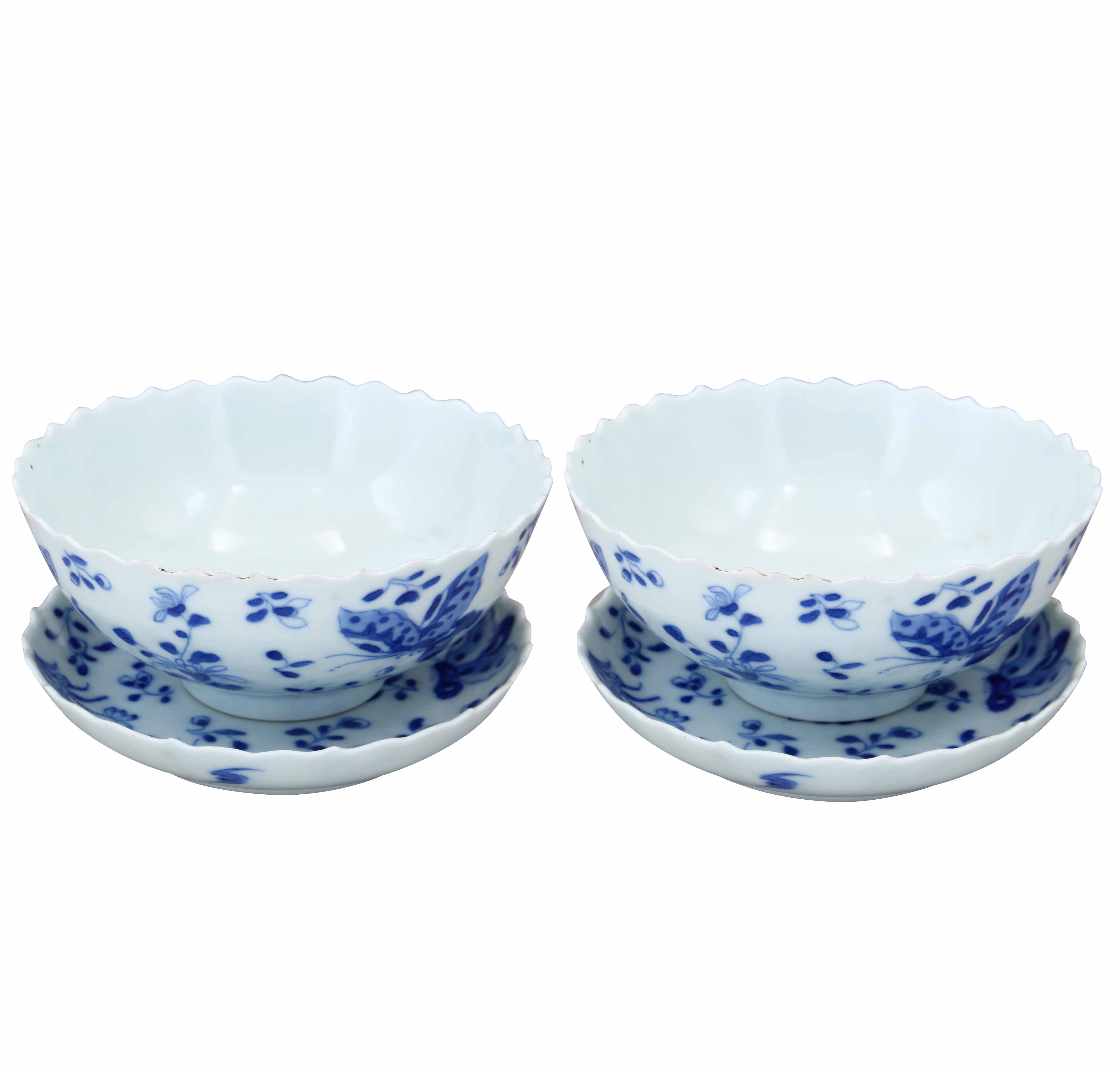 名稱:青花蝴蝶紋葵口花鳥碗一套
