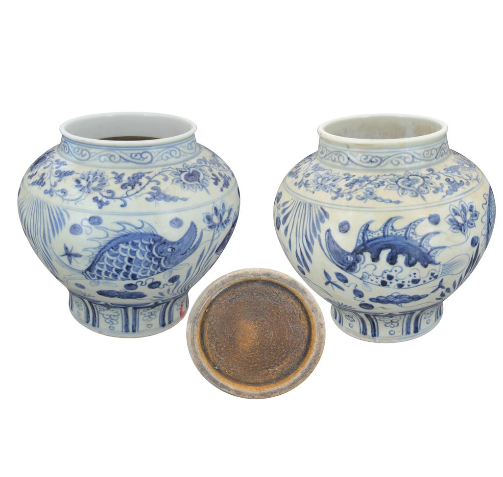 名稱:青花花卉魚(yú)藻紋罐一對(duì)
