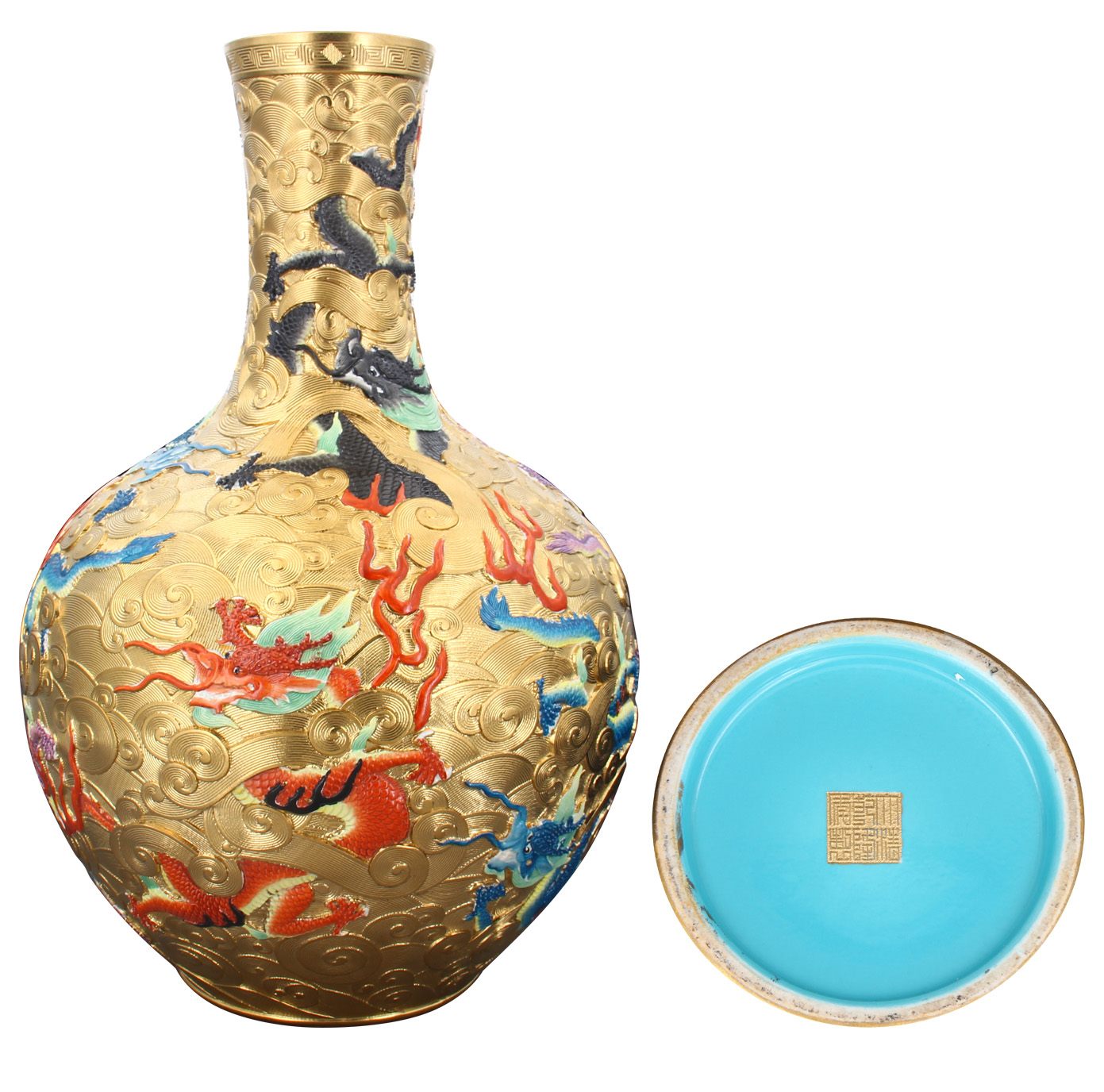 名稱:乾隆年制·鎏金堆塑龍紋天球瓶