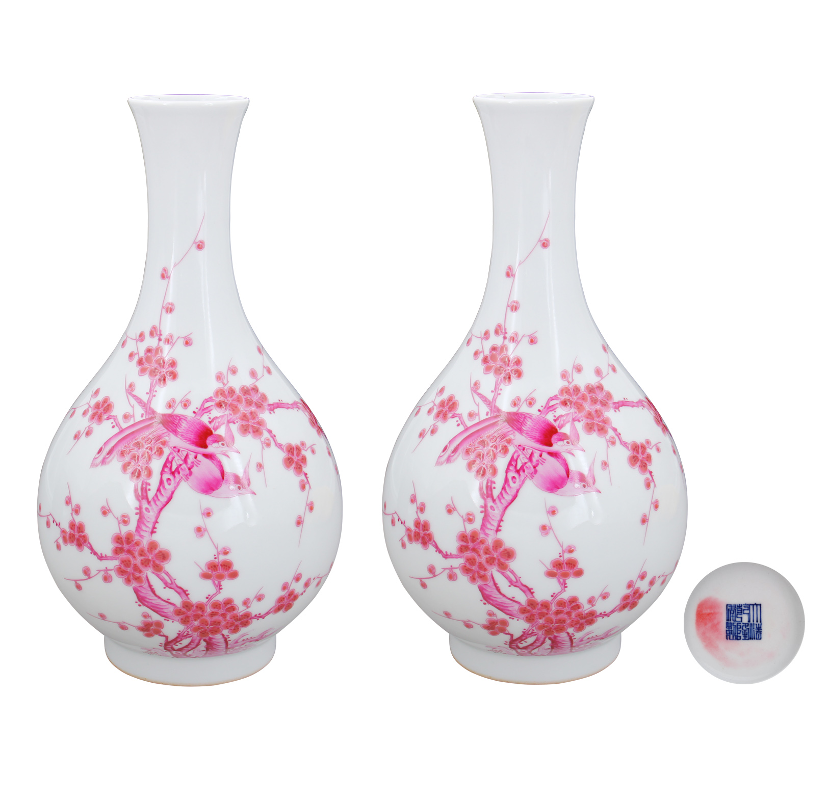 名稱(chēng):大清乾隆年制·胭脂紅喜上眉梢長(zhǎng)頸瓶一對(duì)