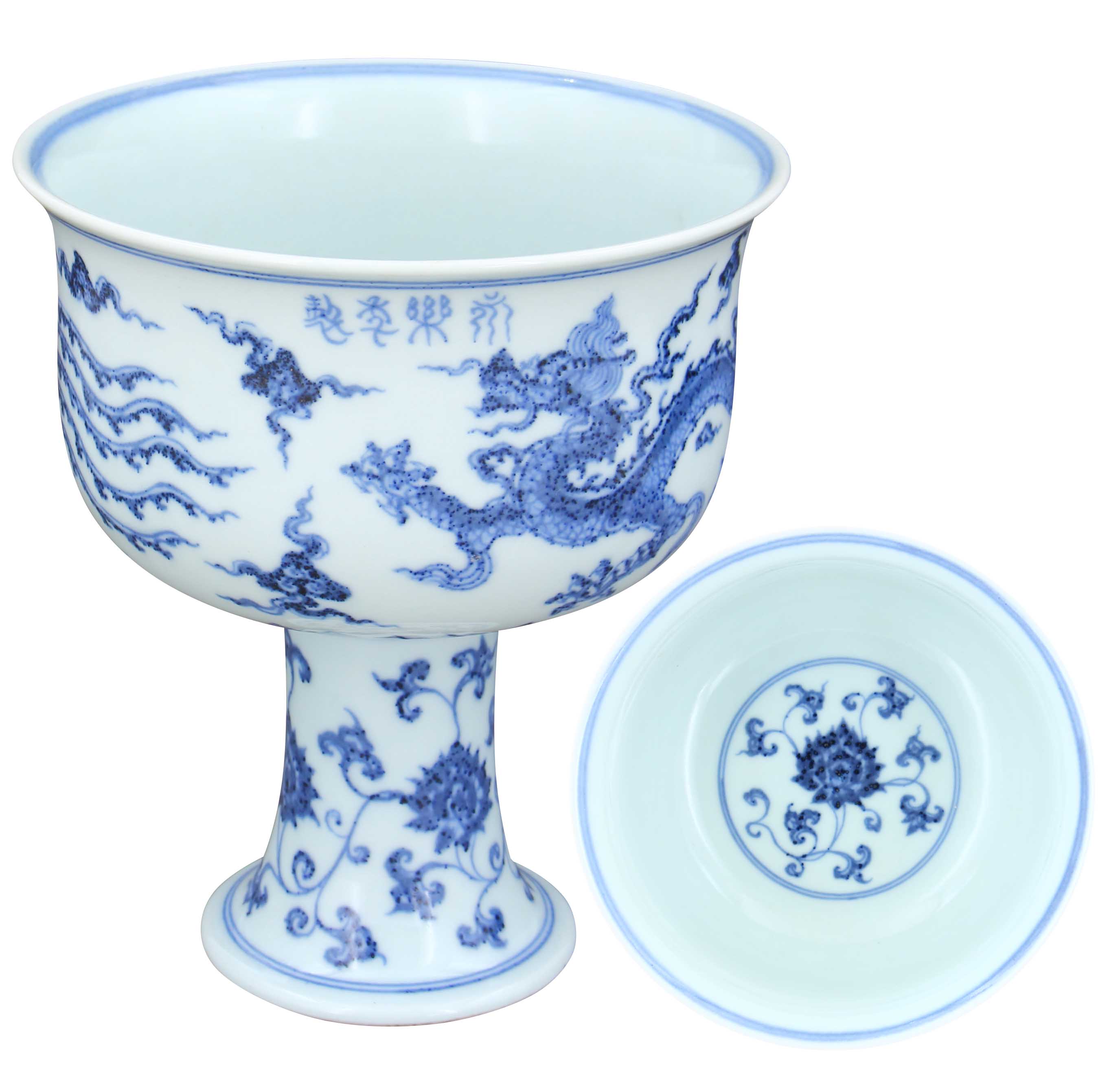 名稱:永樂年制青花龍鳳紋高足碗