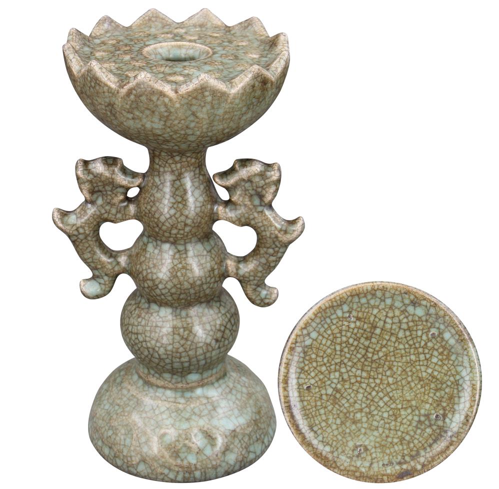 名稱:哥窯·雙螭耳蓮花燭臺