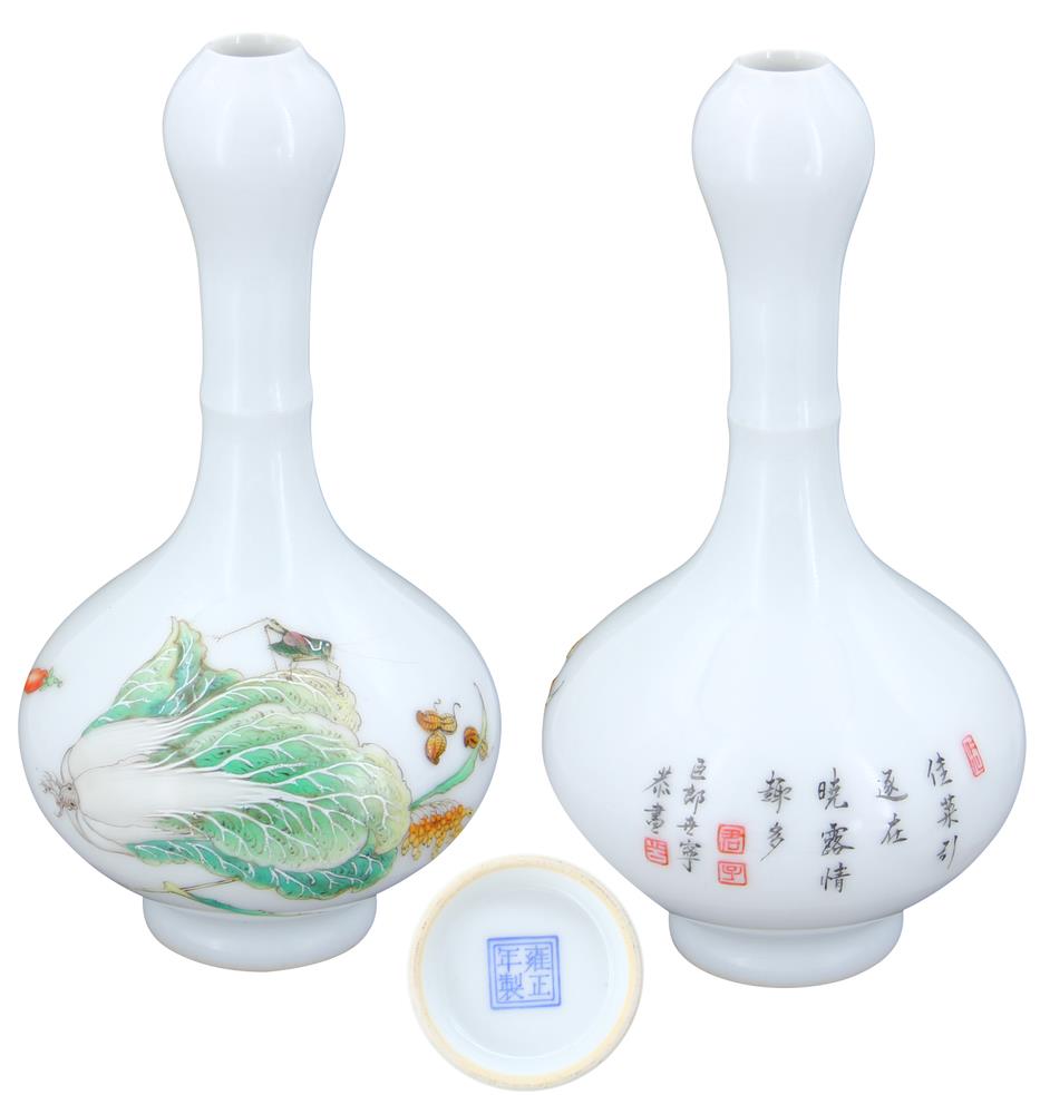 名稱:雍正年制款畫琺瑯花鳥竹節(jié)蒜頭瓶