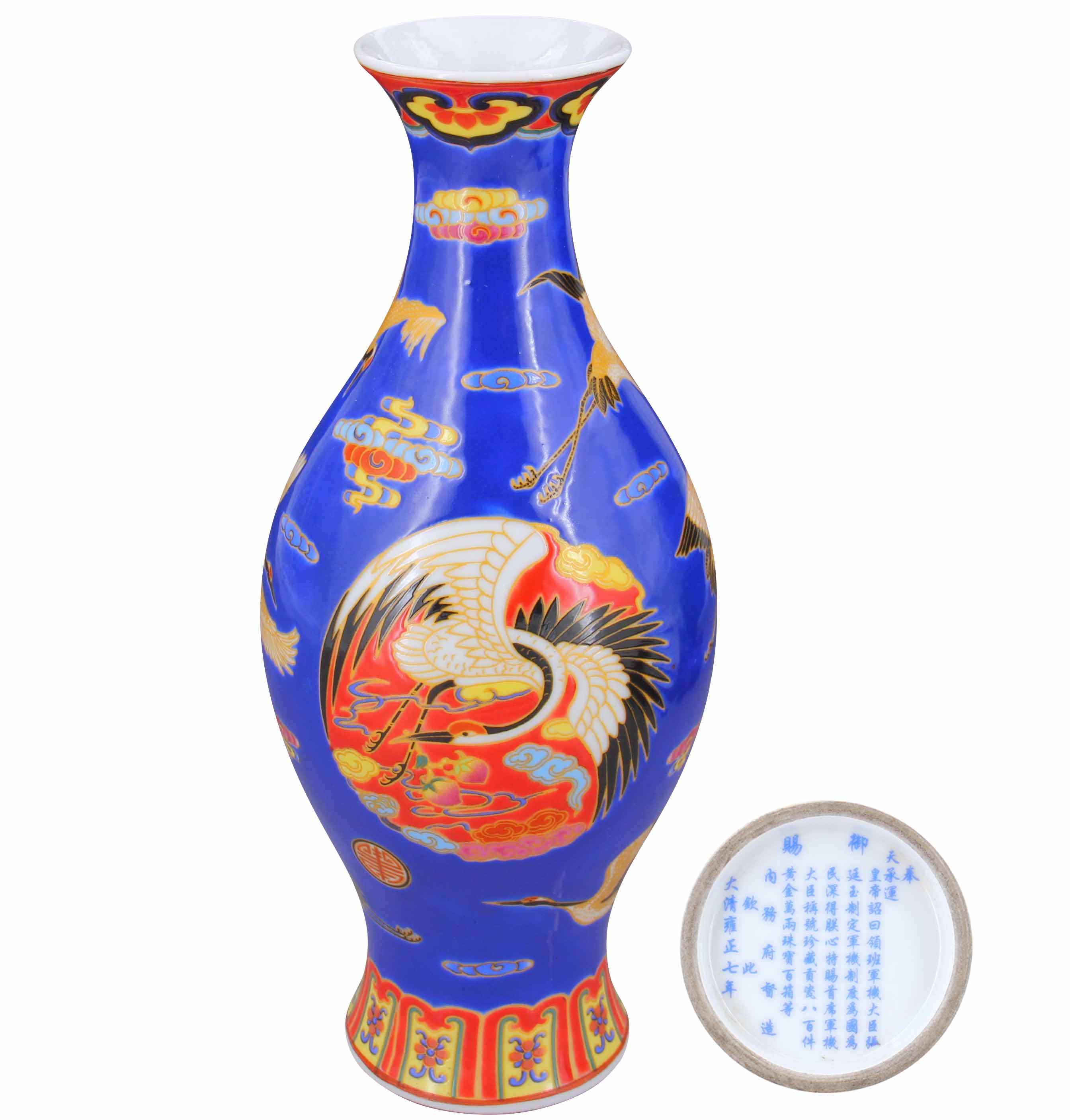 名稱:大清雍正·藍(lán)地仙鶴紋橄欖瓶
