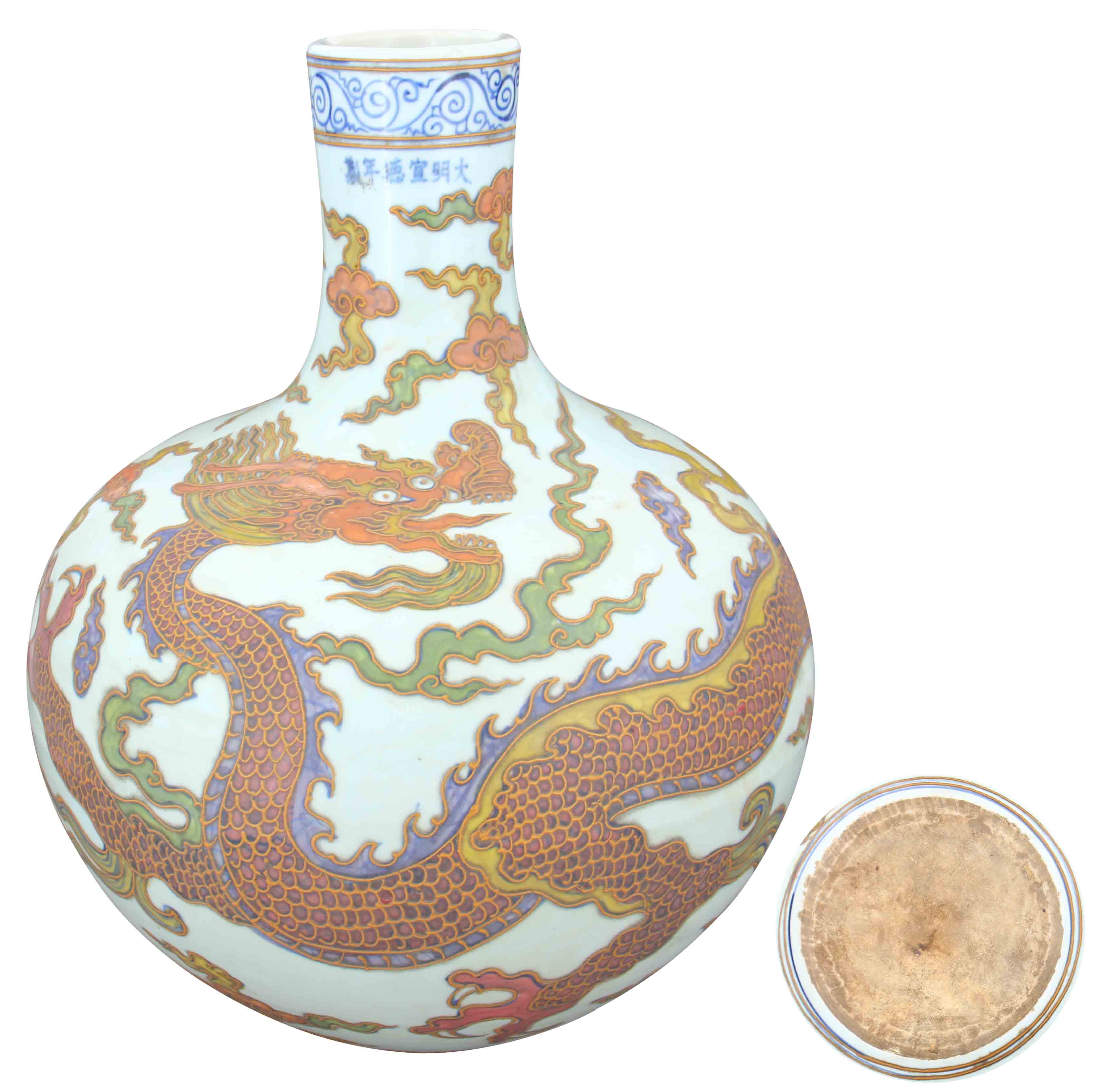 名稱:大明宣德年制·五彩瀝粉描金云龍紋天球瓶