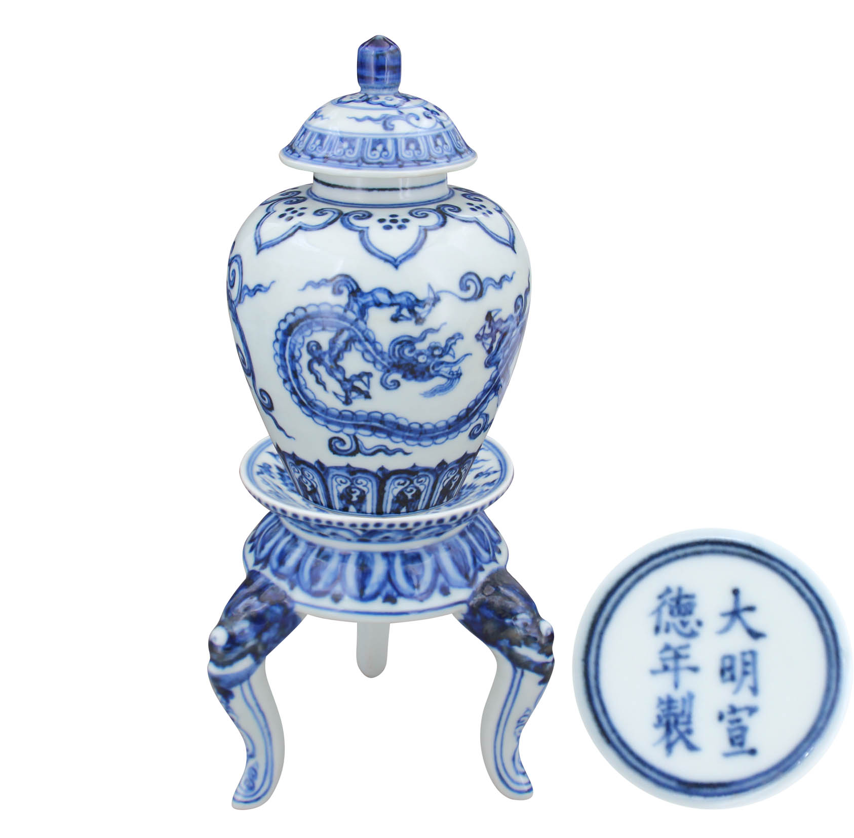 名稱:大明宣德年制·青花龍鳳紋蓋罐