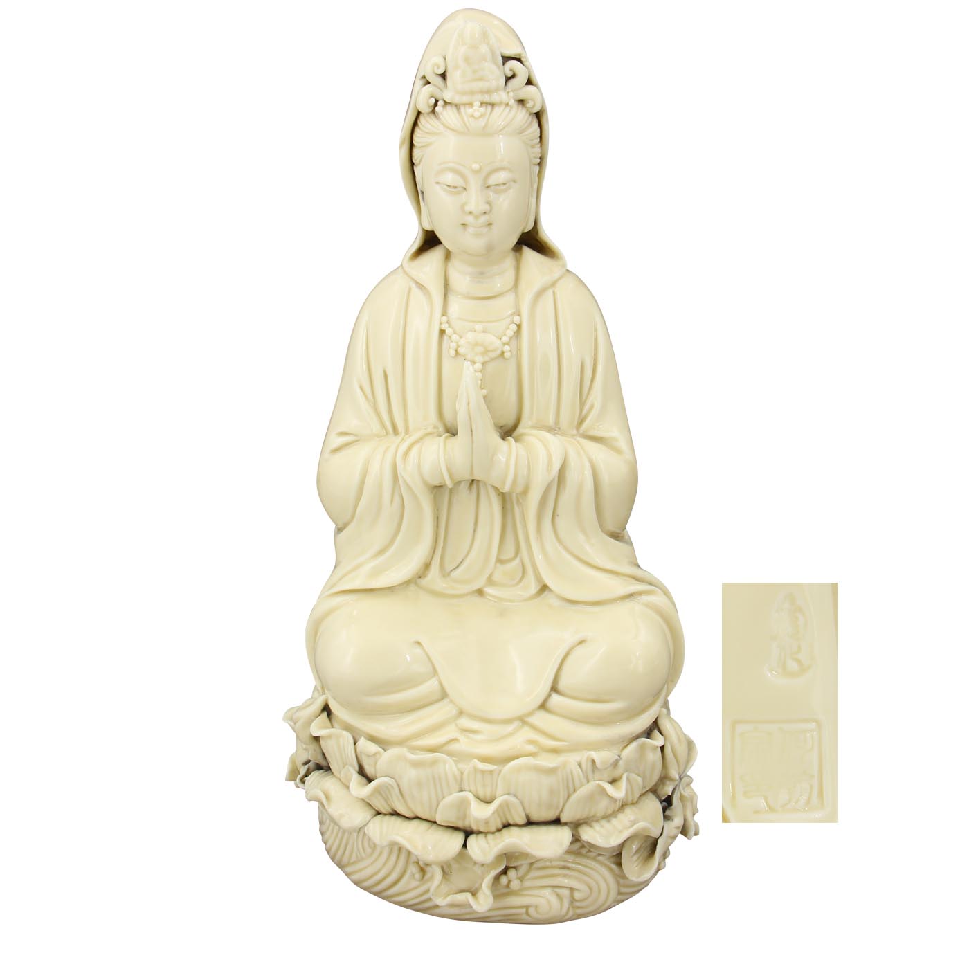 名稱:德化窯 何朝宗款 蓮花觀音造像