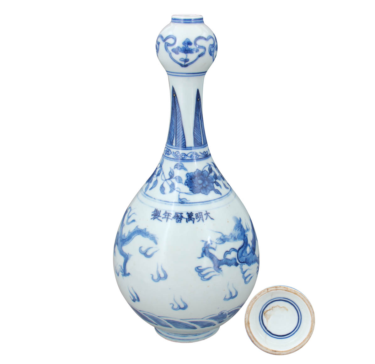 名稱:大明萬歷年制·青花龍紋蒜頭瓶