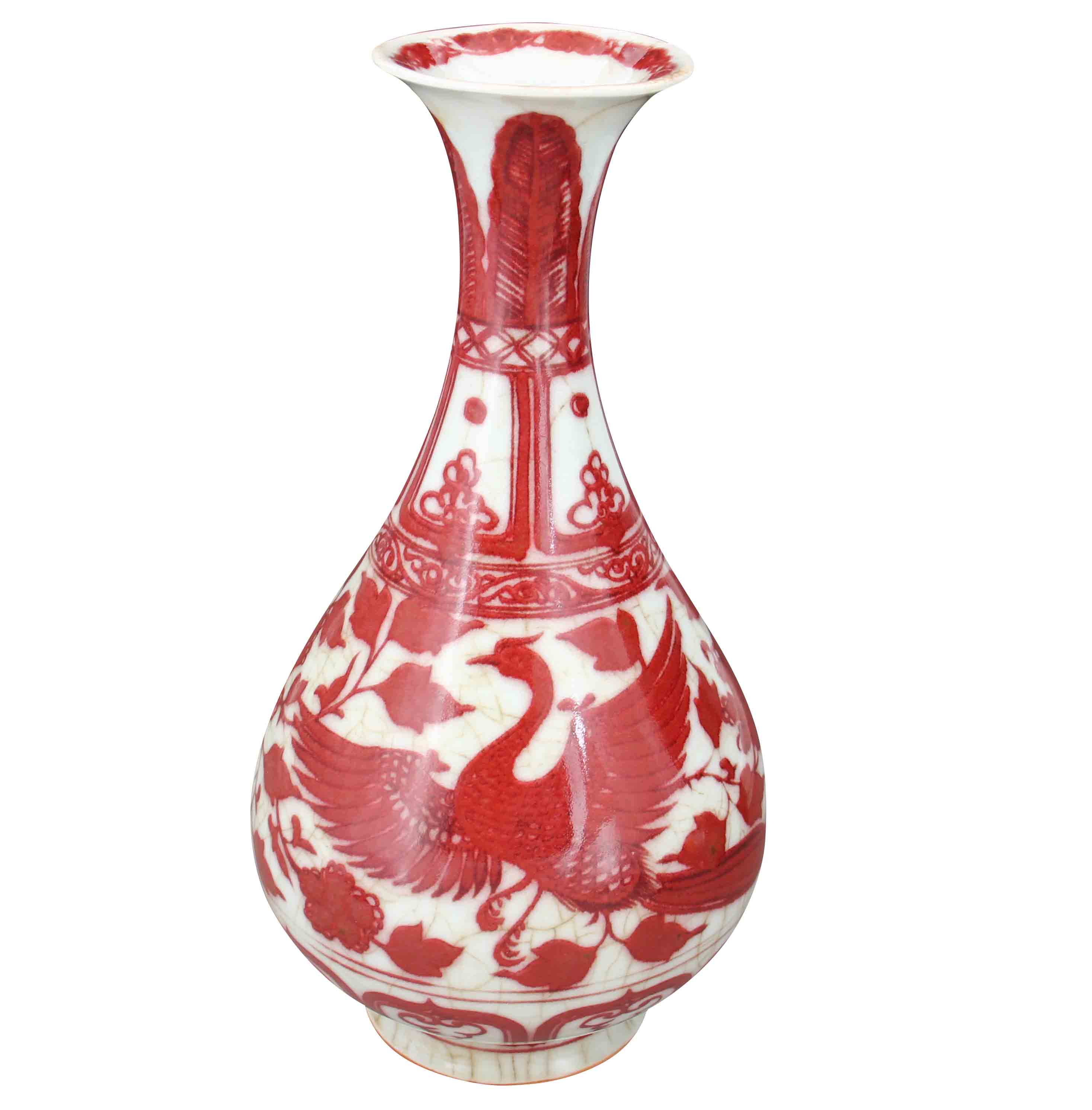名稱:釉里紅雙鳳紋玉壺春瓶