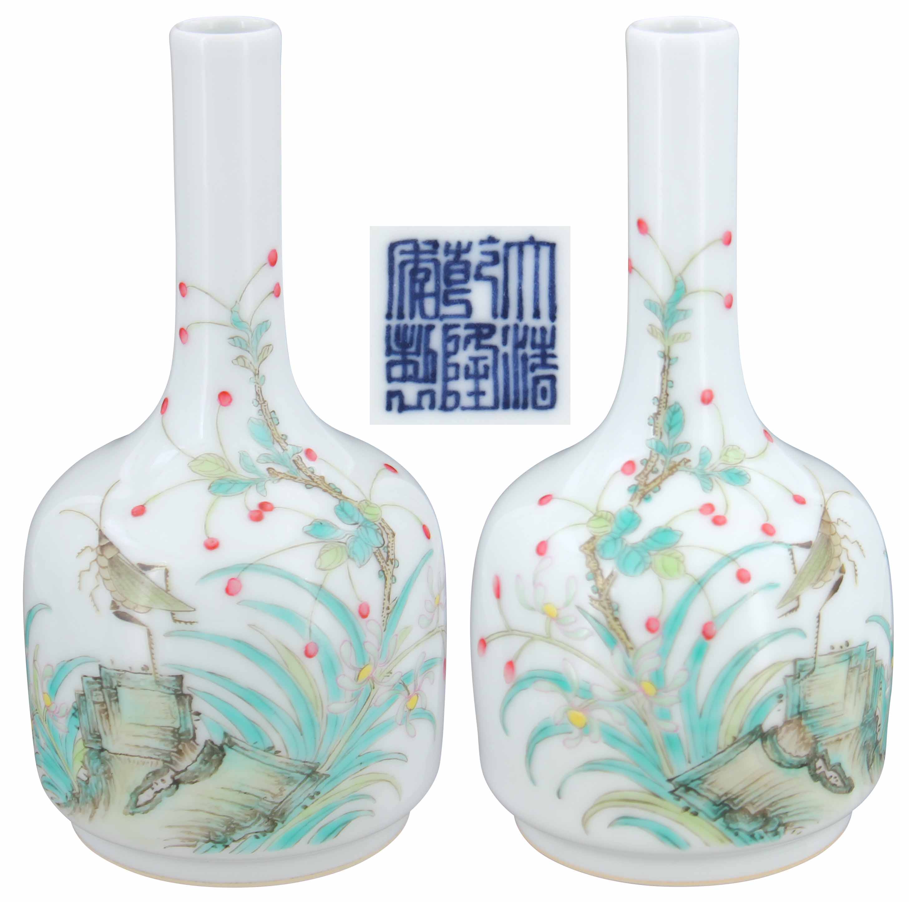 名稱:大清乾隆年制款粉彩花卉紋長(zhǎng)頸瓶一對(duì)