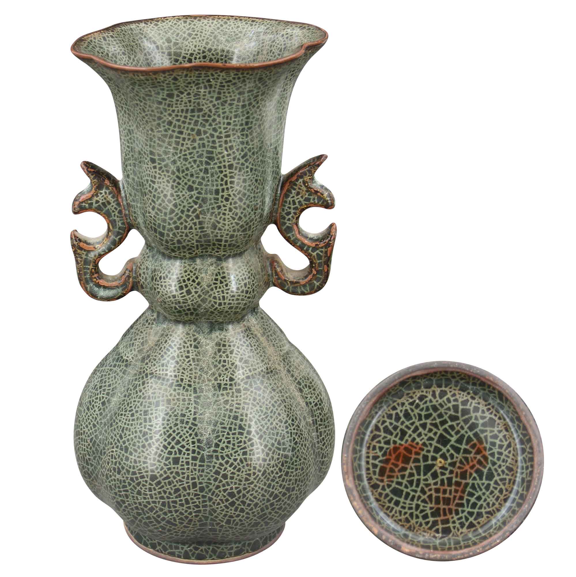 名稱:哥釉雙蚩耳瓜棱膽瓶