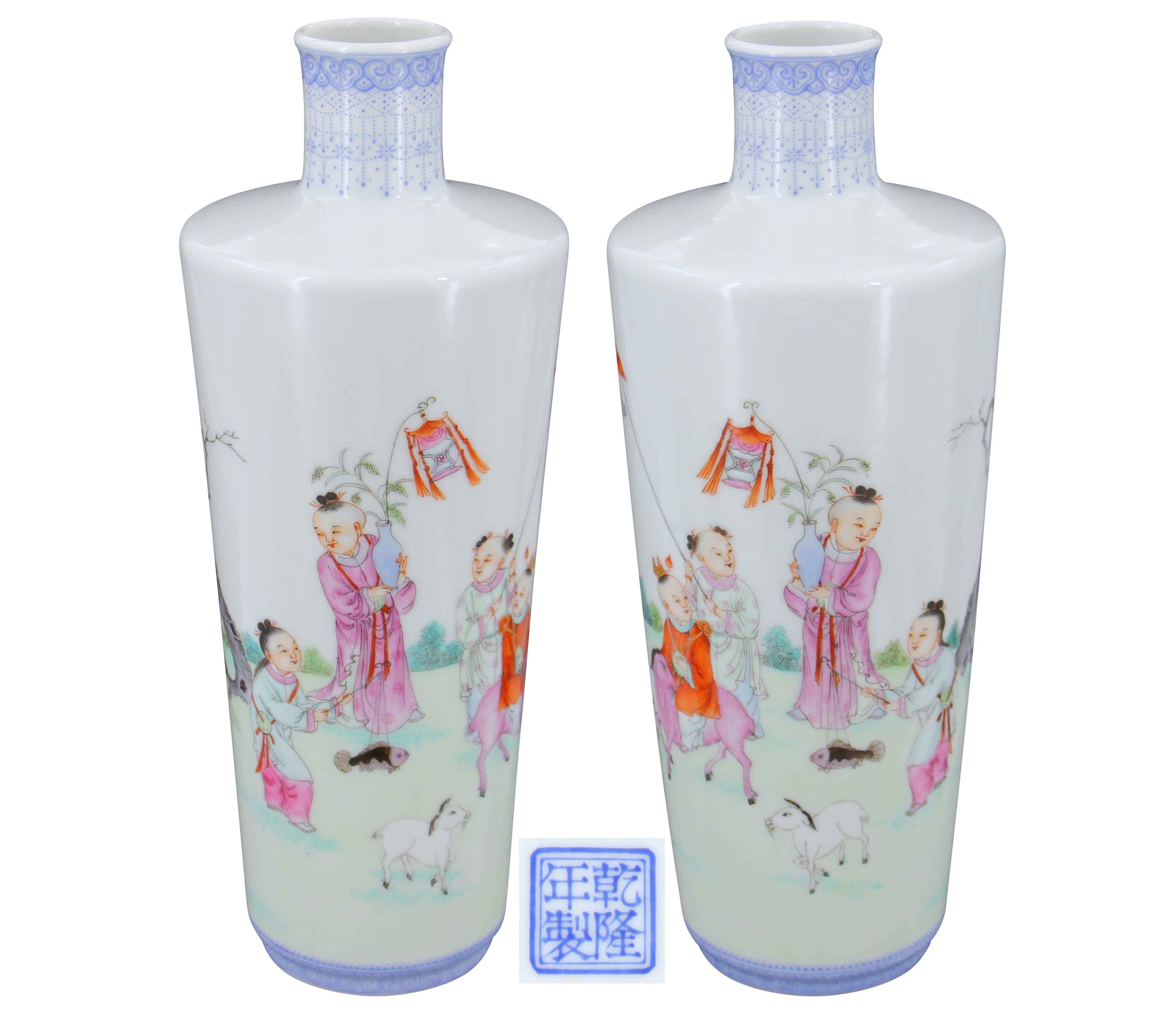 名稱:大清雍正年制·粉彩嬰戲紋賞瓶一對