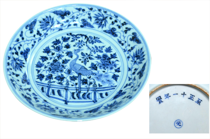 名稱:青花花鳥紋盤(至正十一年制)款1810-1