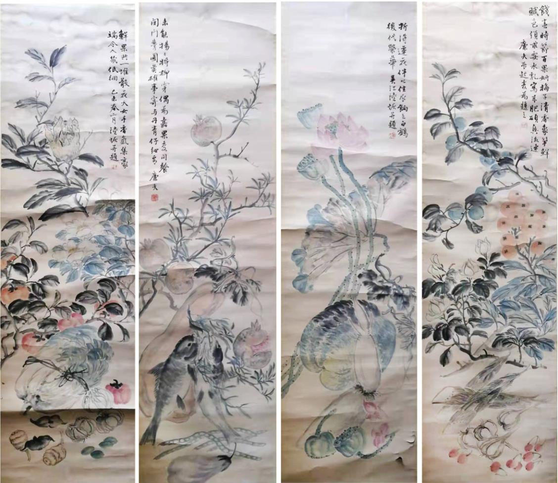 名稱:陸恢款春夏秋冬蔬果圖四屏